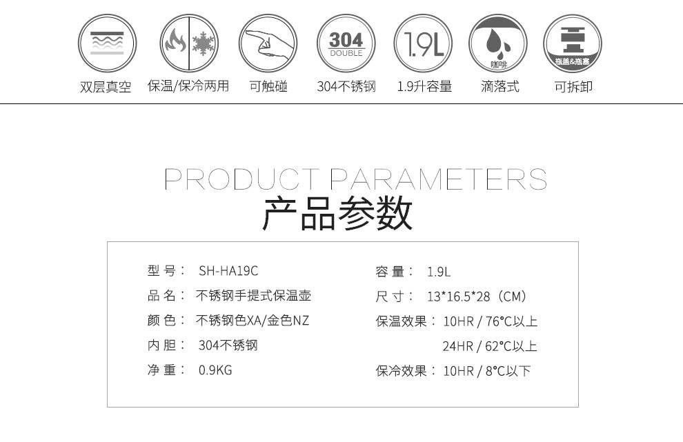 象印保温壶礼品代理 SH-HA19C咖啡壶1.9L不锈钢水壶 公司会议礼品