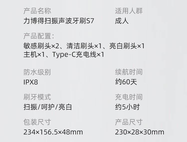 力博得 S7扫振声波牙刷 电动牙刷 积分兑换礼品 企业伴手礼定制代理