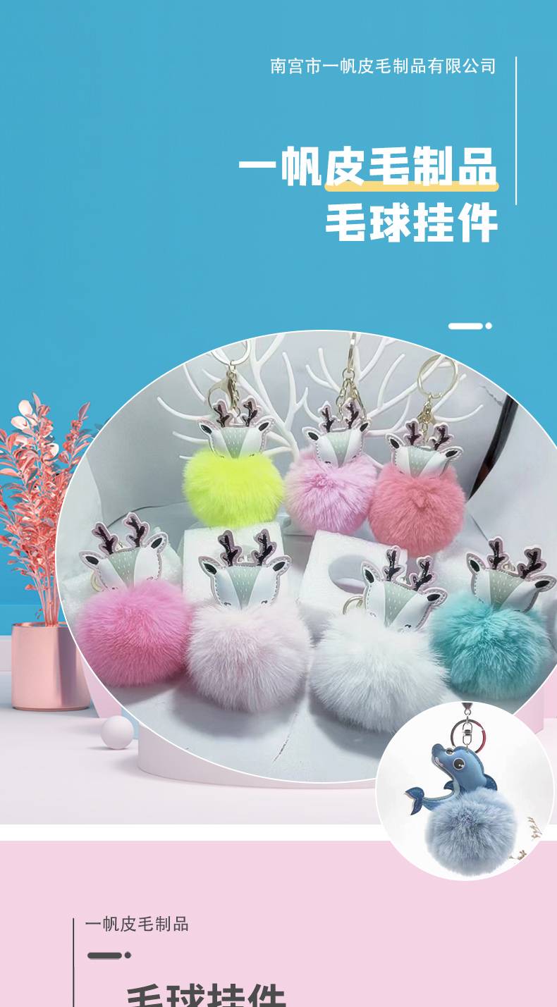 厂家批发新款7cm仿獭兔圆珠笔毛球多色毛绒球幼儿园小学生用铅笔