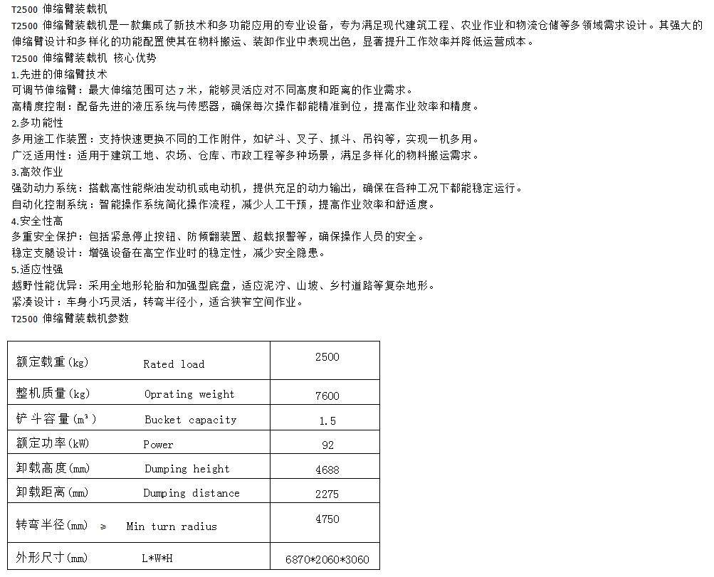 T2500伸缩臂装载机 动力强劲 举升高度大 适用于矿山作业