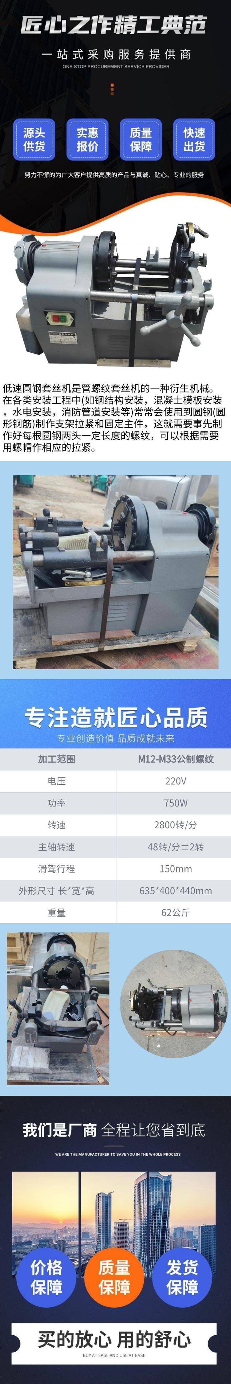 M33低速圆钢螺纹机 长条板牙 使用简单 钢结构圆钢筋车丝机
