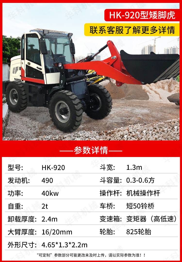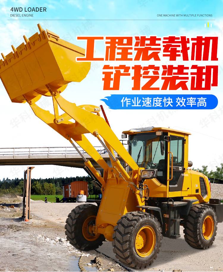 Small wheel loader bulldozing, engineering low-foot agricultural shovels, rollers and snow cleaners