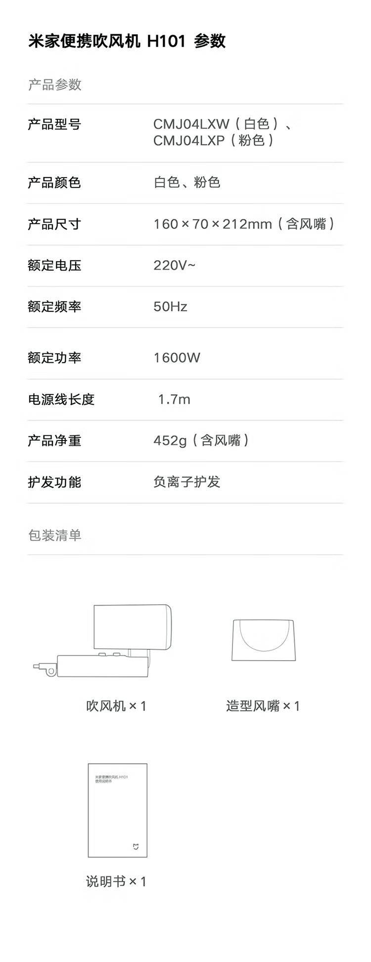 小米 电吹风 H101 吹风机可折叠大风力速干护发便携旅行实用礼物
