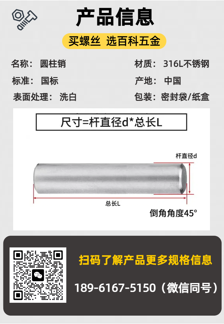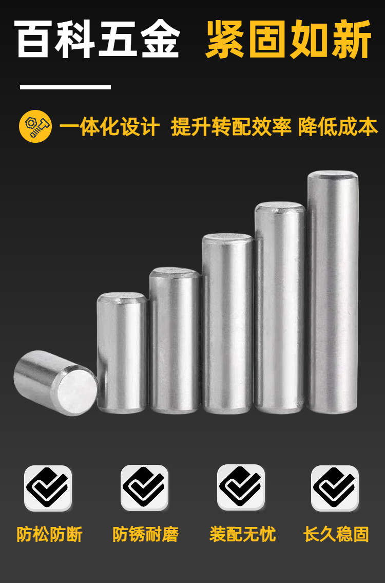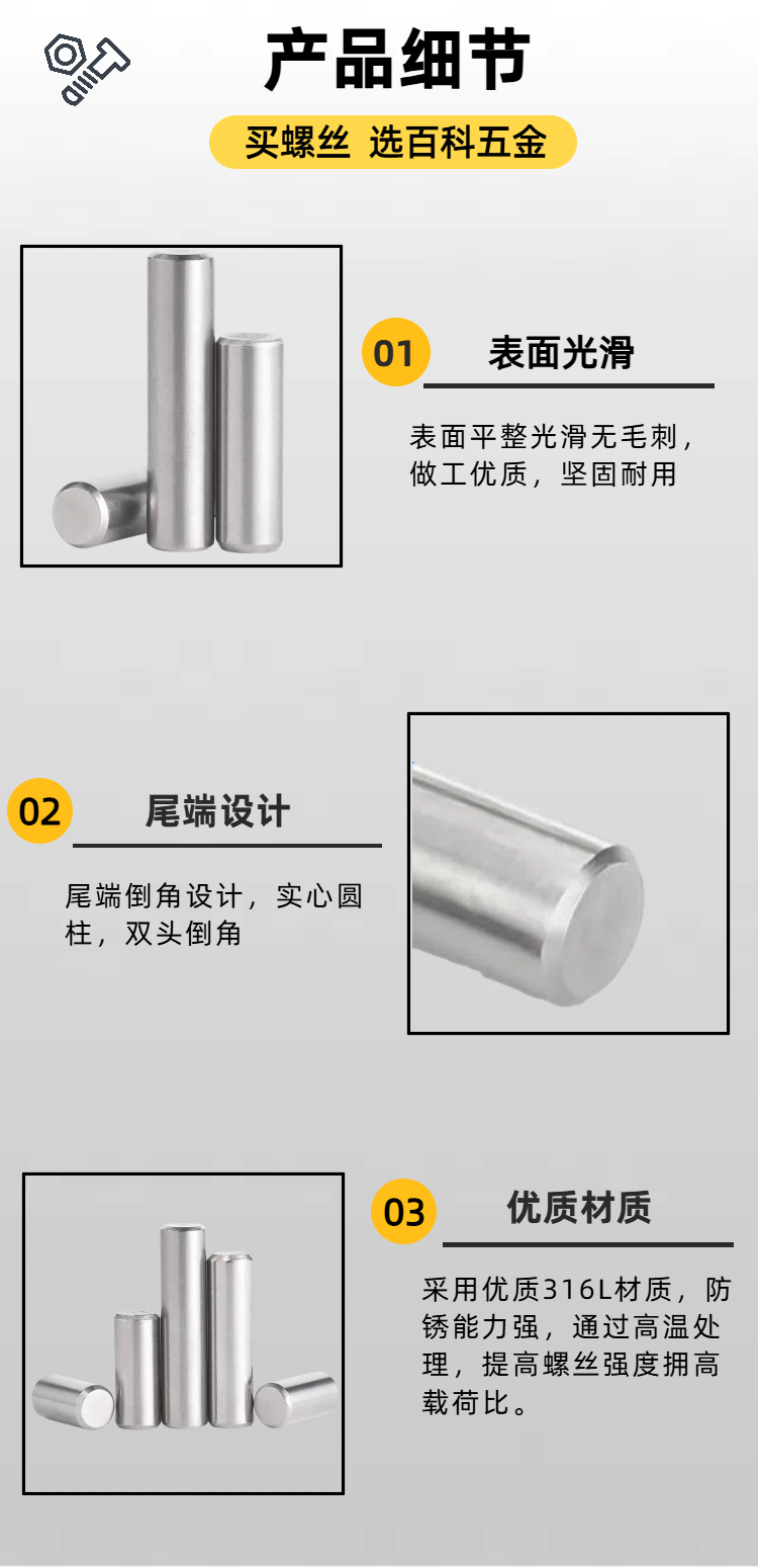 316L不锈钢圆柱销 实心定位销 整体光滑无毛刺 双向倒角 精准度高 百科