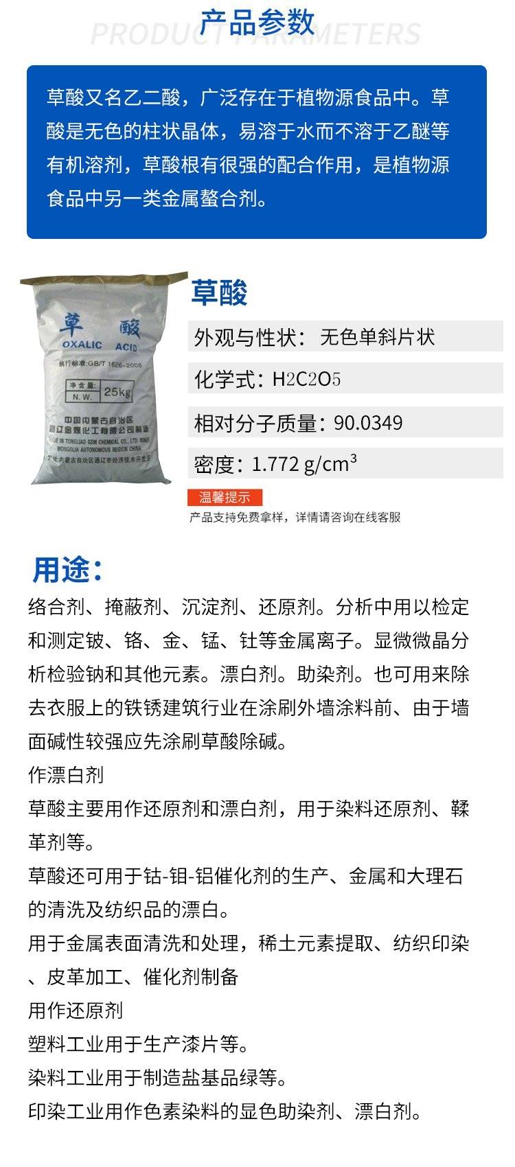 2222工业草酸乙二酸纤维漂白 化工乙二酸还原剂漂白剂草酸 铭之鑫