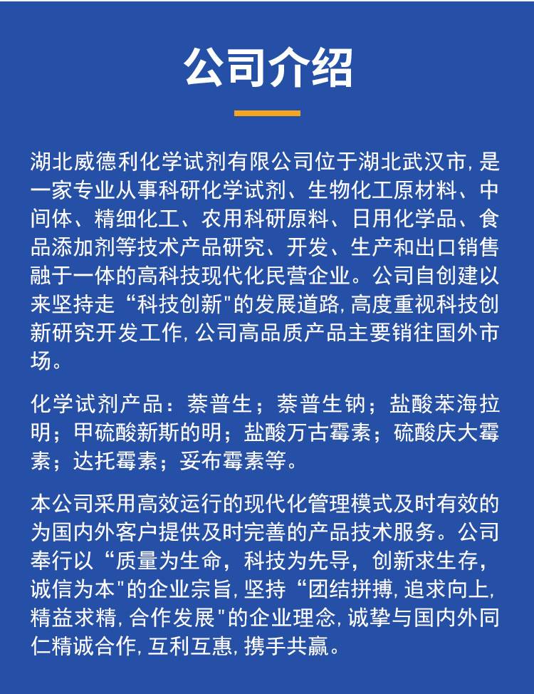 Welcome toHubei Weideli Chemical Reagent Co., Ltd