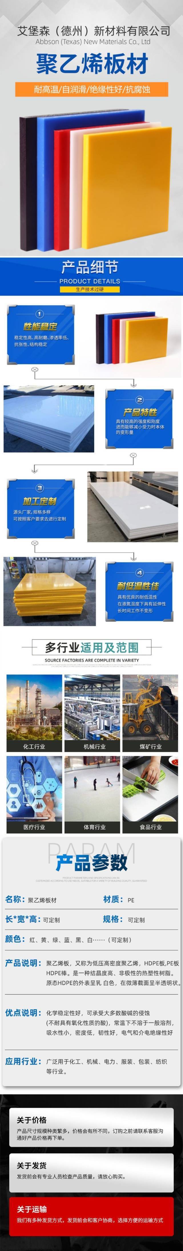 超高分子量聚乙烯板材UHMW-PE耐磨塑料板加工定制