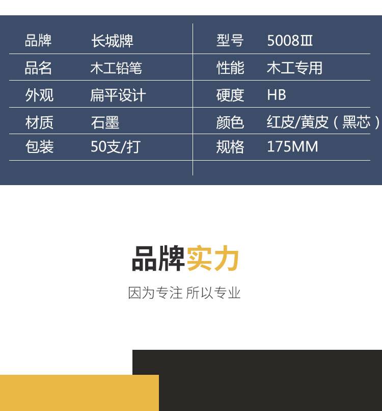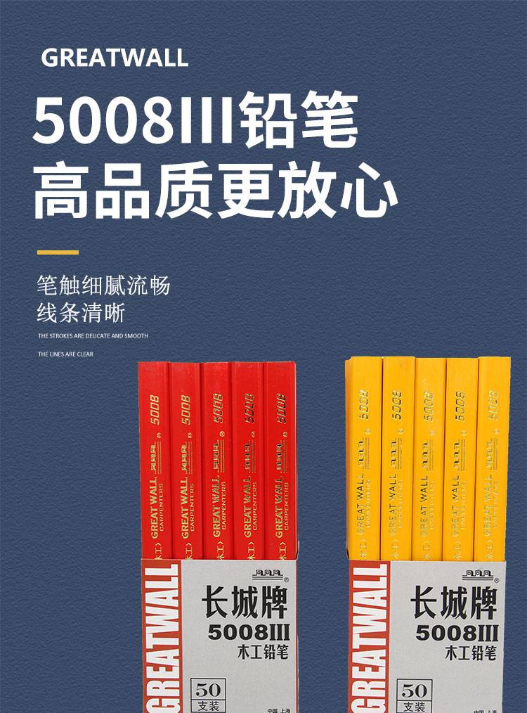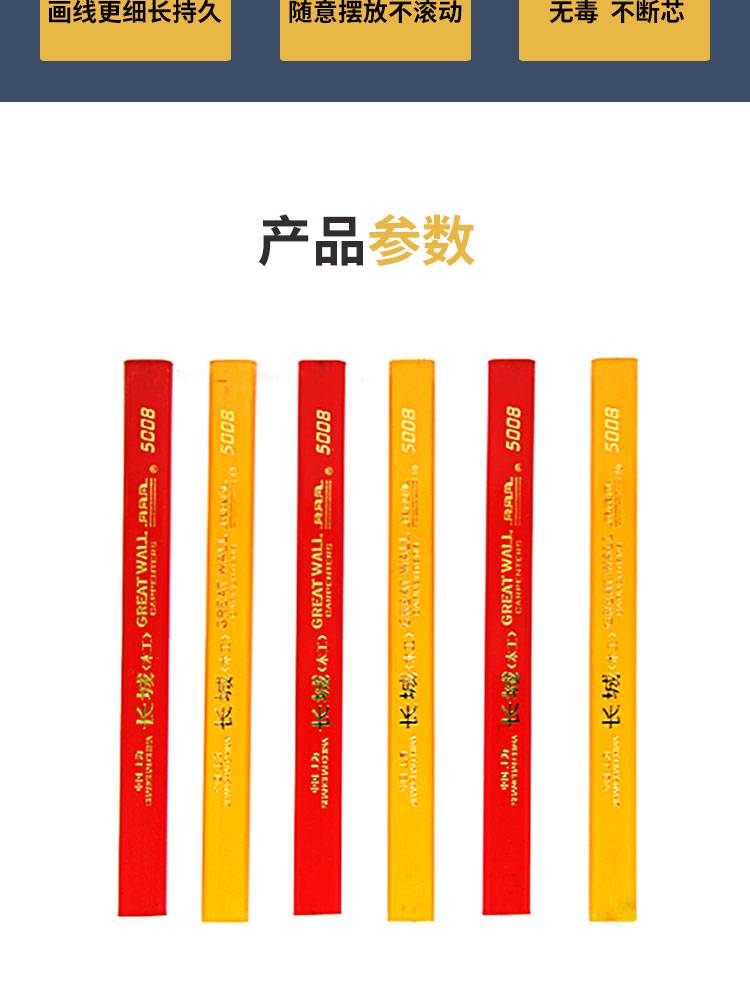 长城牌木工笔铅笔专用工程绘图画线扁头笔黑色铅芯50支装批发新款