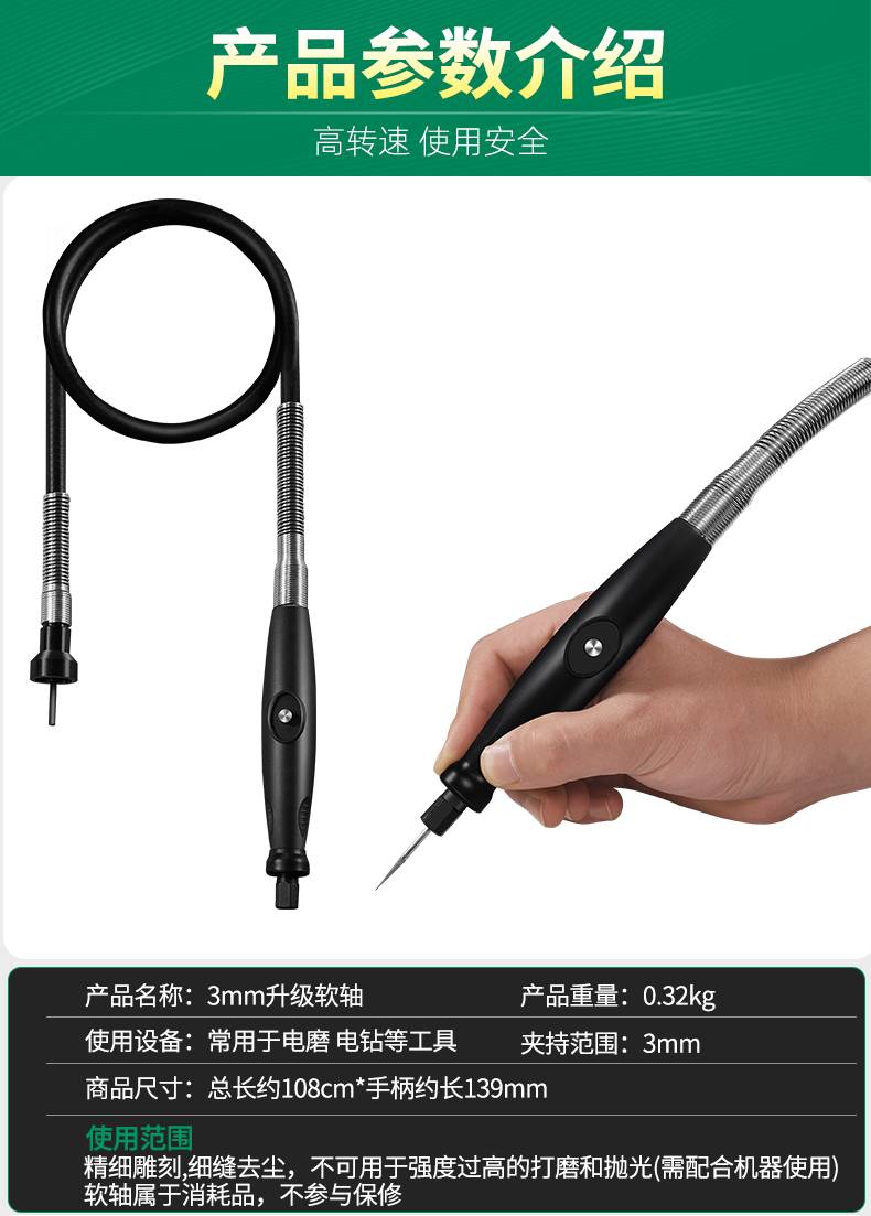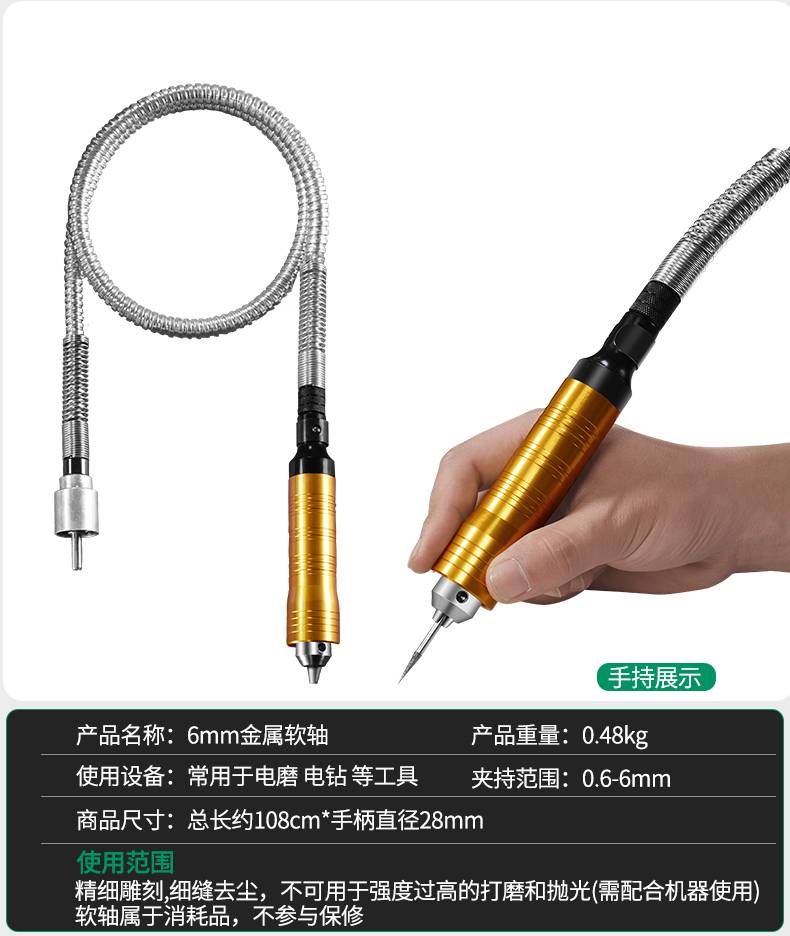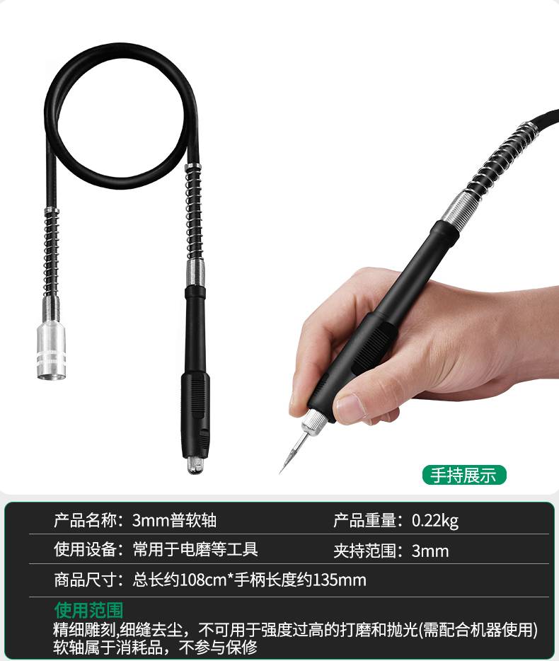 电磨软轴雕刻笔机吊磨机电钻手柄软管延长线346mm夹头台磨软轴