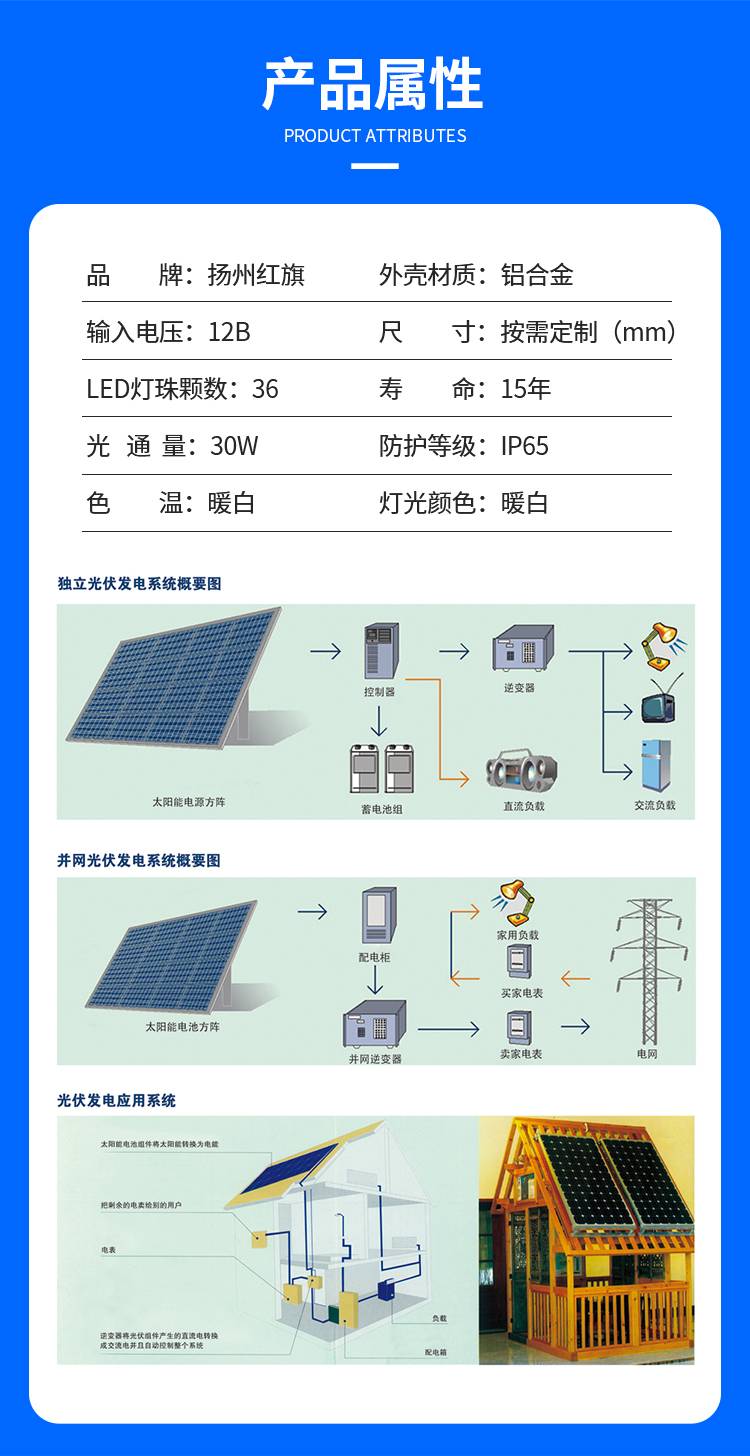 无污染太阳能灯 避免长距离输电损失 高亮度节能灯 红旗