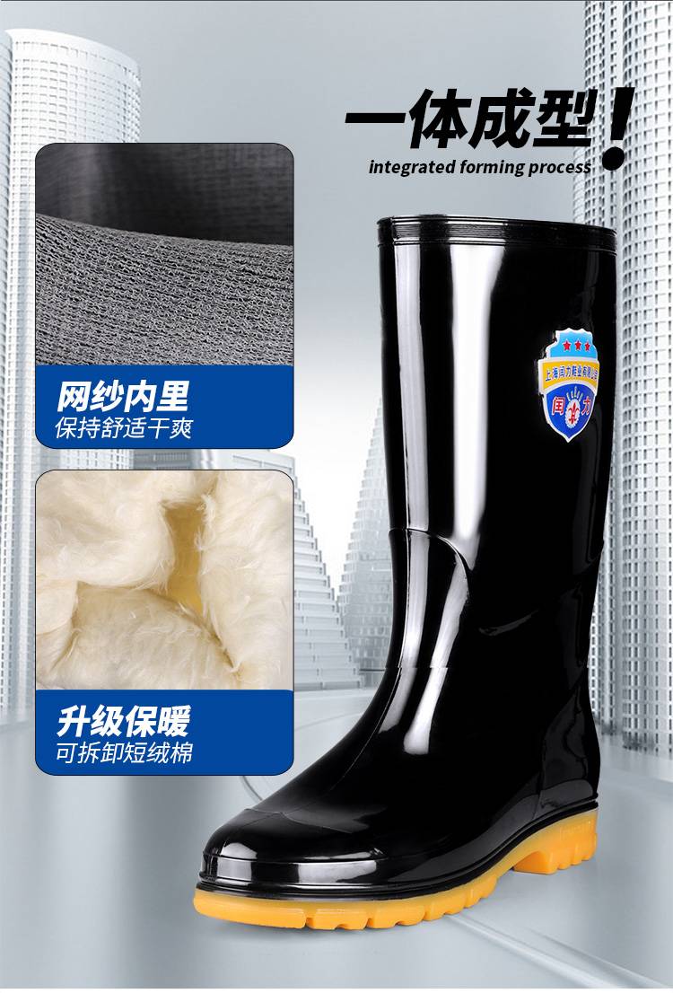 冬季加绒雨鞋男高筒棉水鞋加厚带毛一体雨靴防风保暖防滑胶鞋套鞋