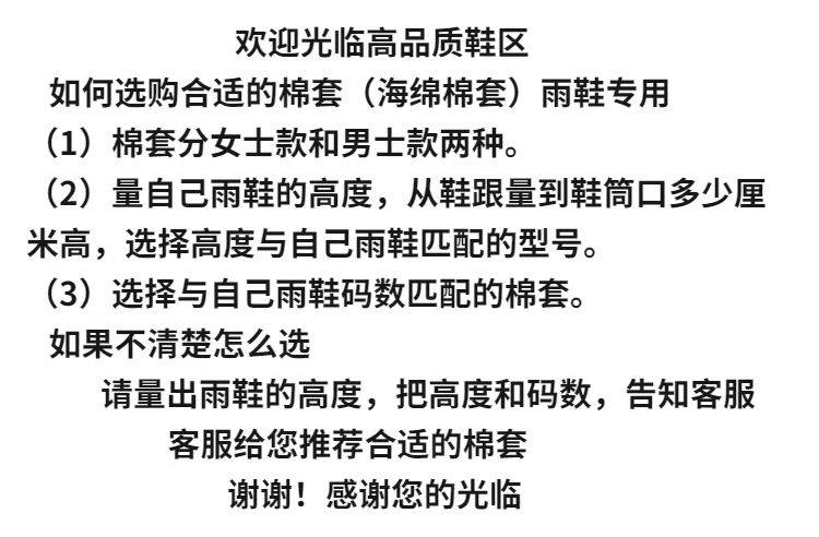 雨鞋内胆棉套男士冬季加厚加绒高筒雨靴中筒水鞋女士低筒保暖袜套