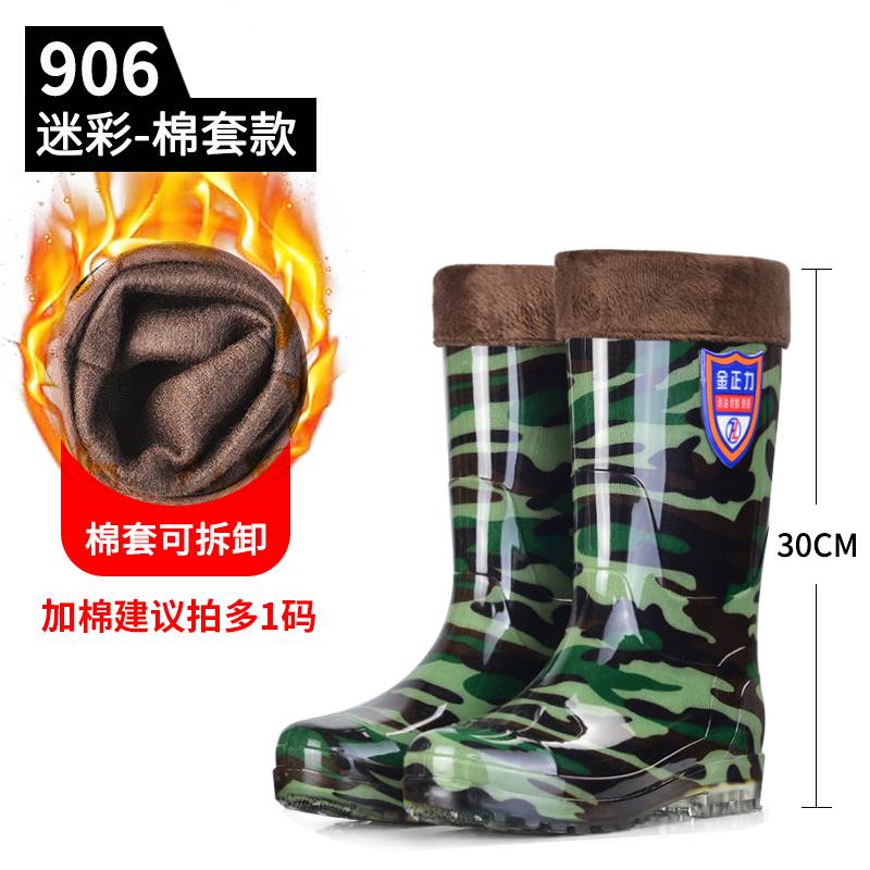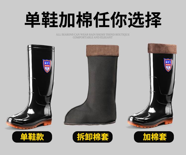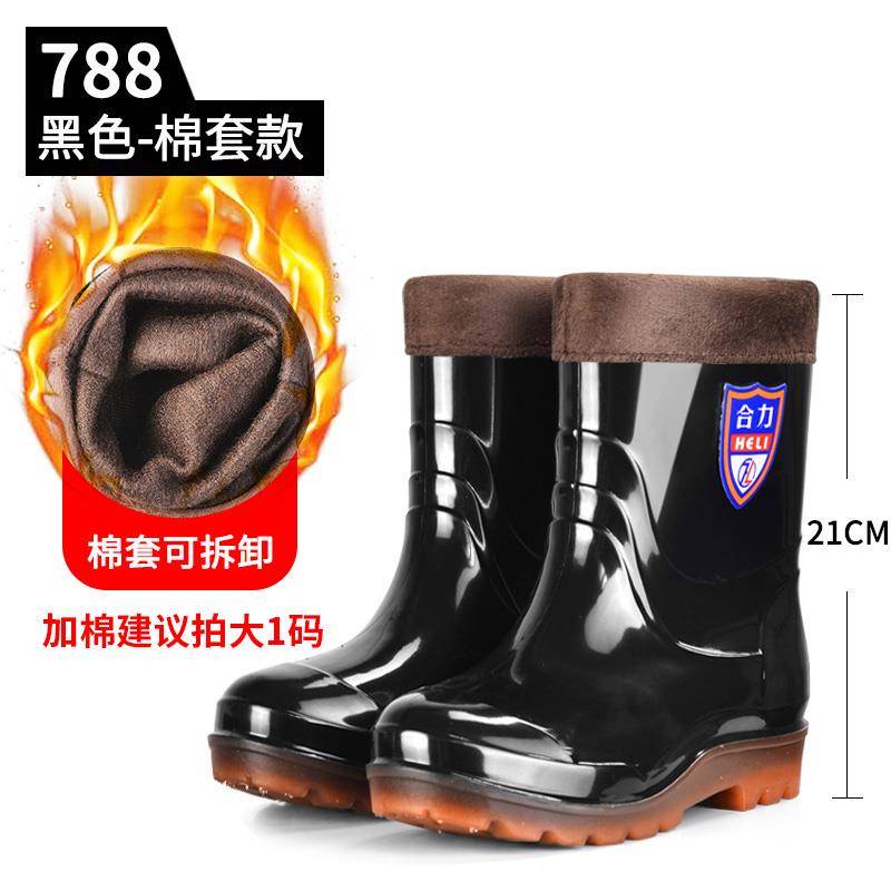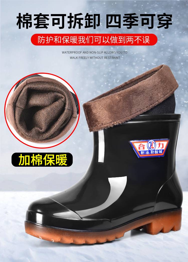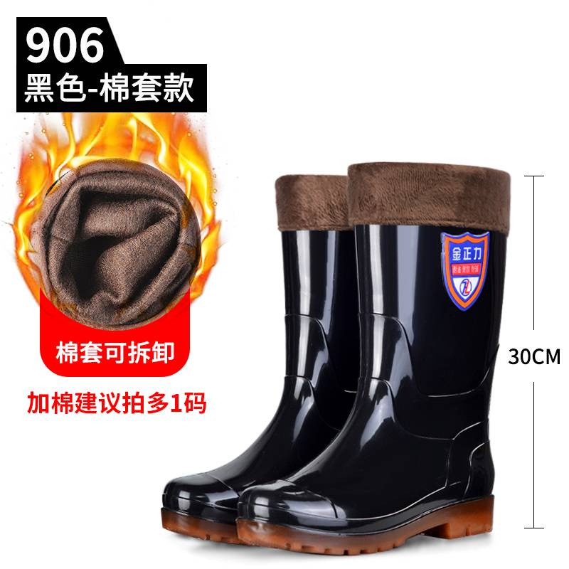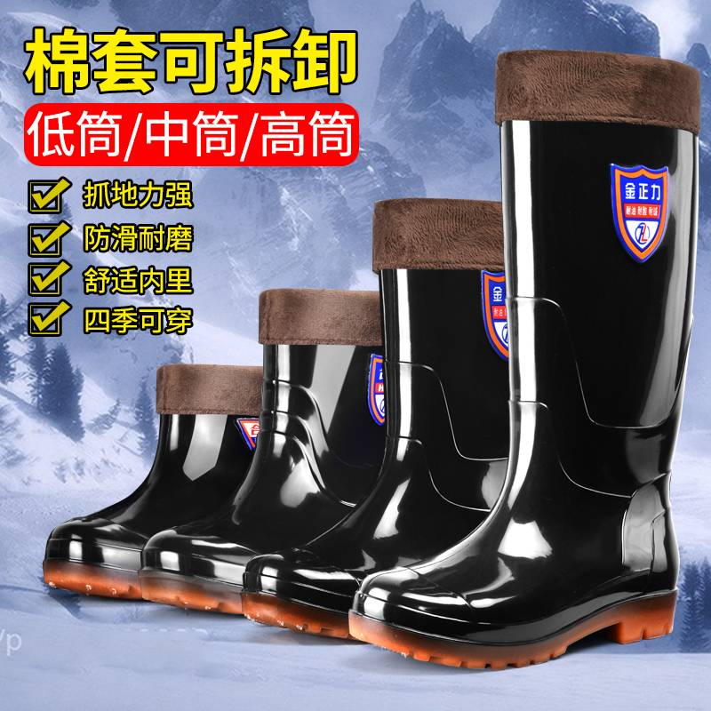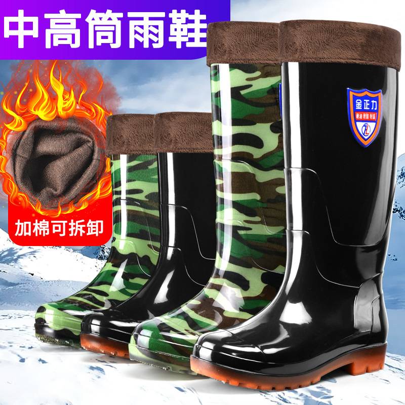 冬季加绒雨鞋男高筒棉水鞋加厚带毛一体雨靴防风保暖防滑胶鞋套鞋
