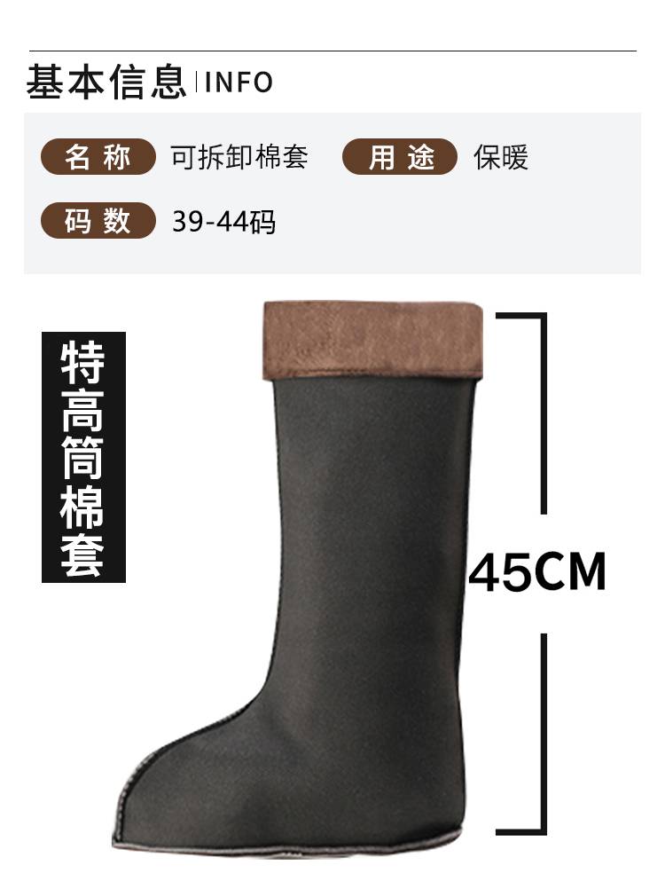 雨鞋内胆棉套男士冬季加厚加绒高筒雨靴中筒水鞋女士低筒保暖袜套