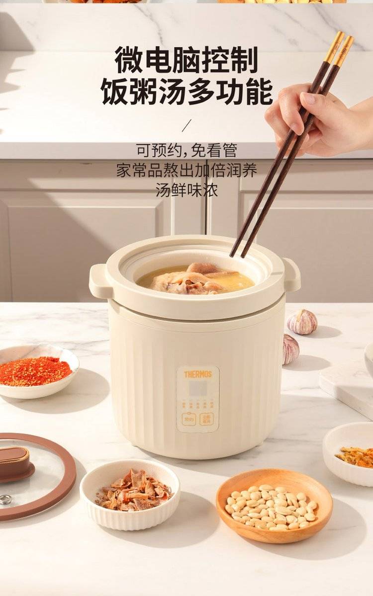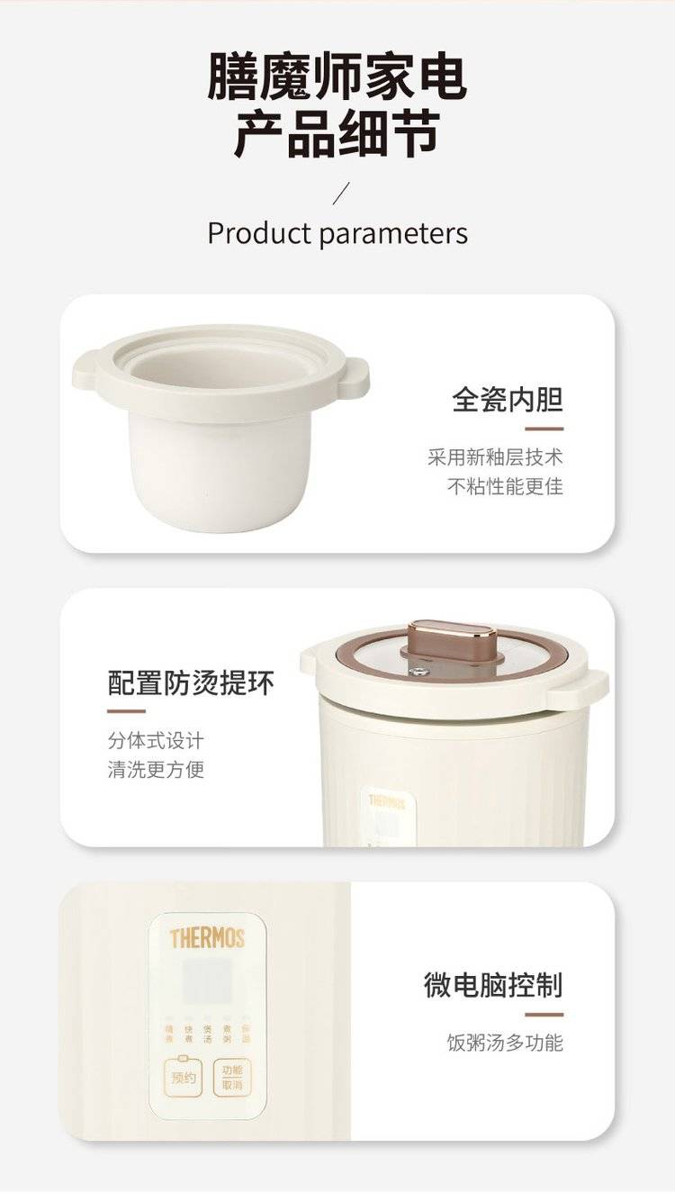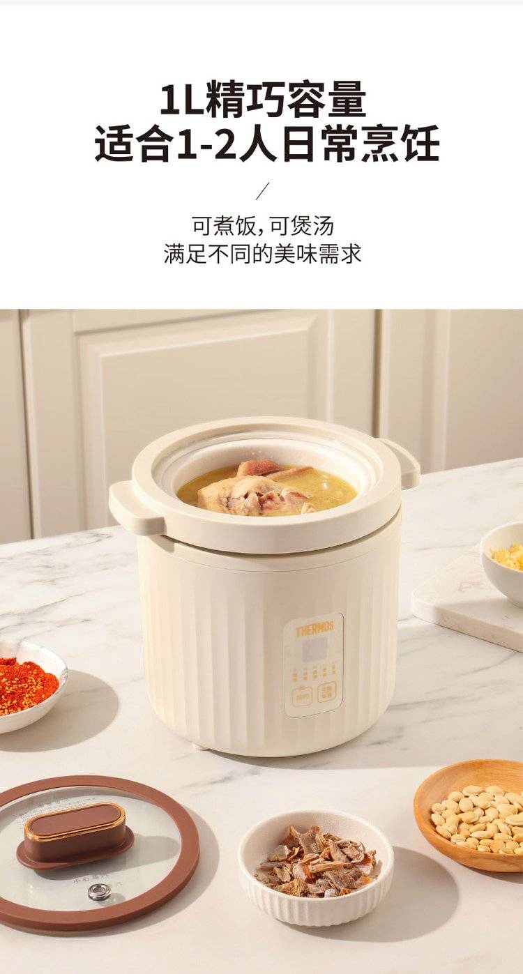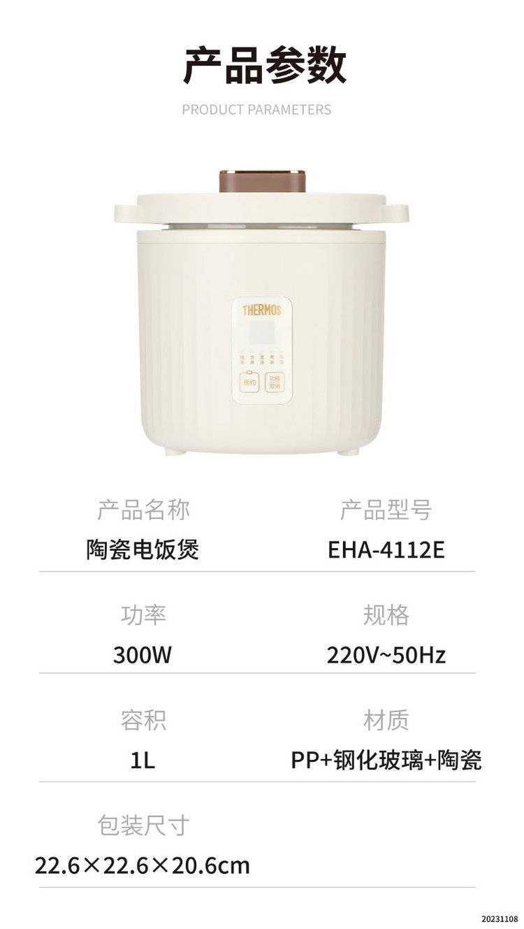膳魔师EHA-4112E 陶瓷电饭煲 THERMOS全瓷内胆电饭锅 1L迷你电煮锅