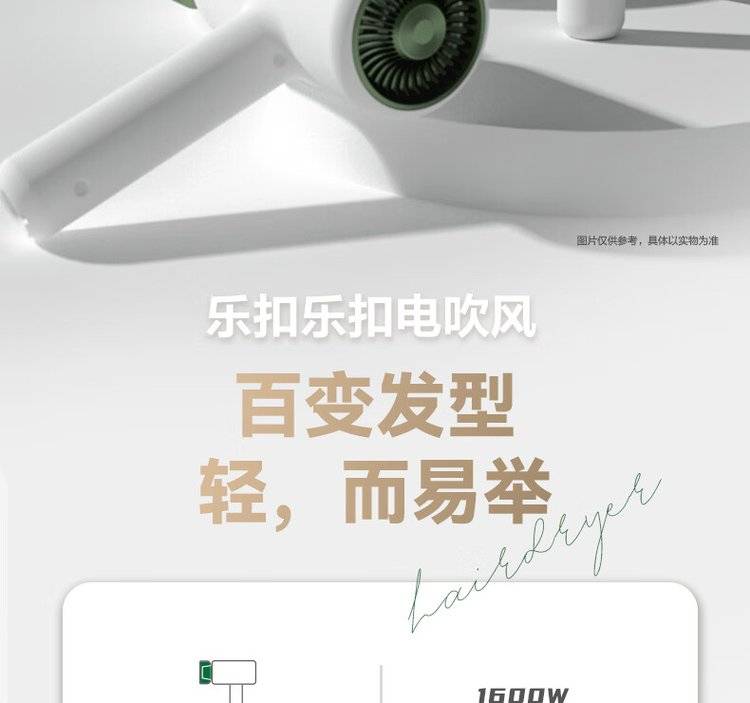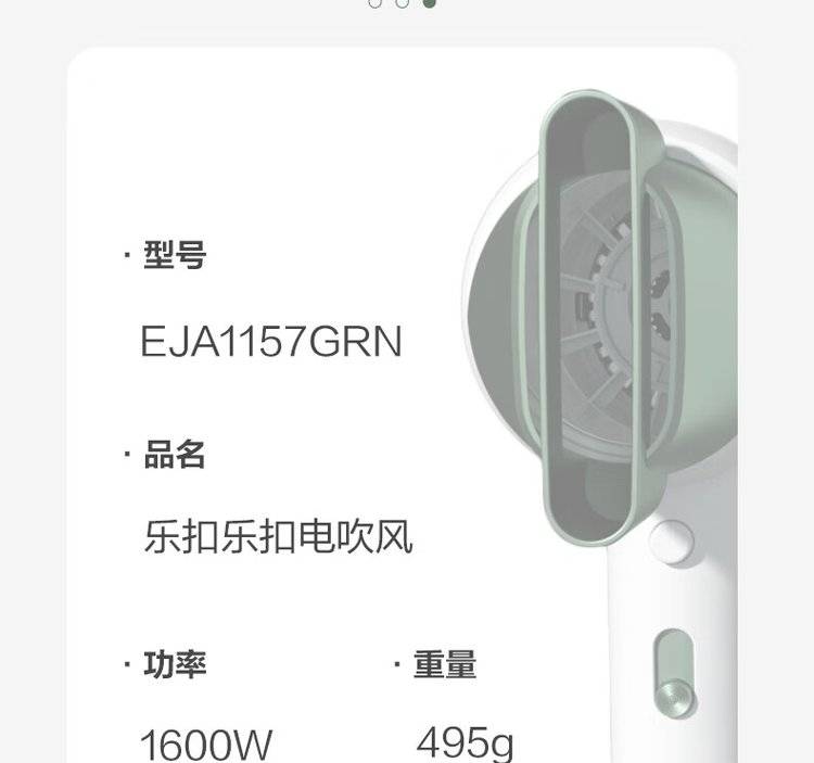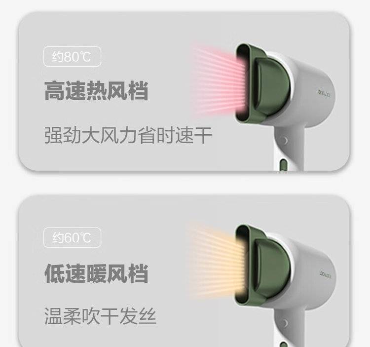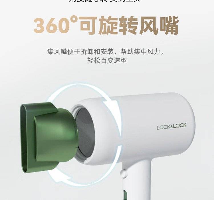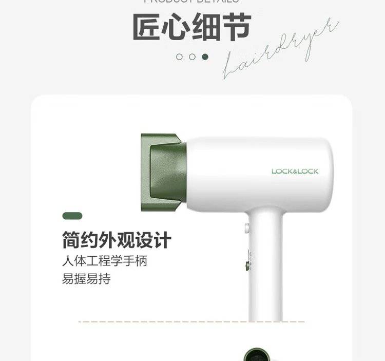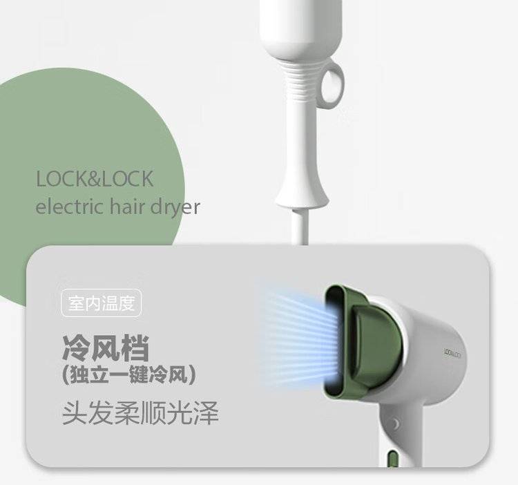 EJA1157GRN绿色 乐扣乐扣吹风机 三挡调温电吹风 智能恒温 一键冷风