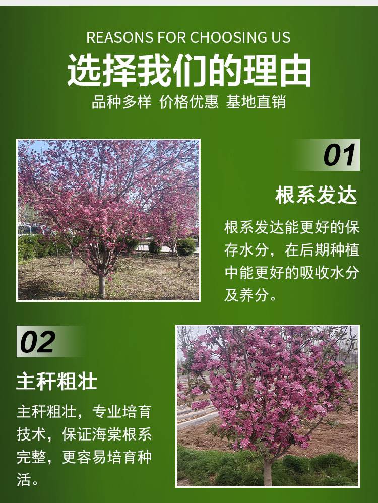 大叶垂丝海棠 湿地公园绿化用 基地直发 耐寒性强 春秋园艺