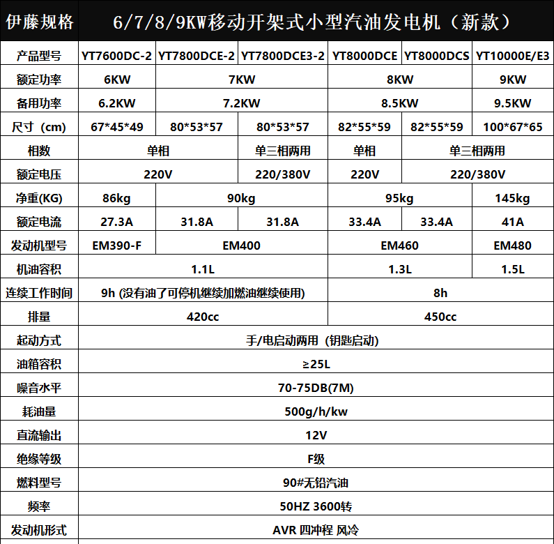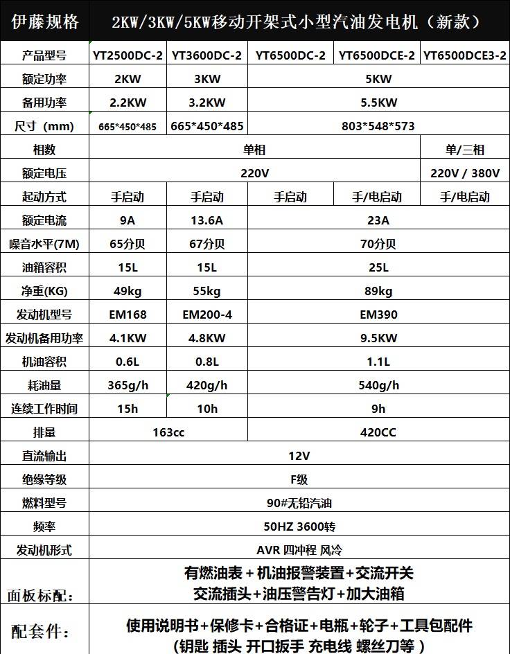 伊藤动力汽油发电机2KW3KW5KW7KW8KW户外应急车载移动手推便携式