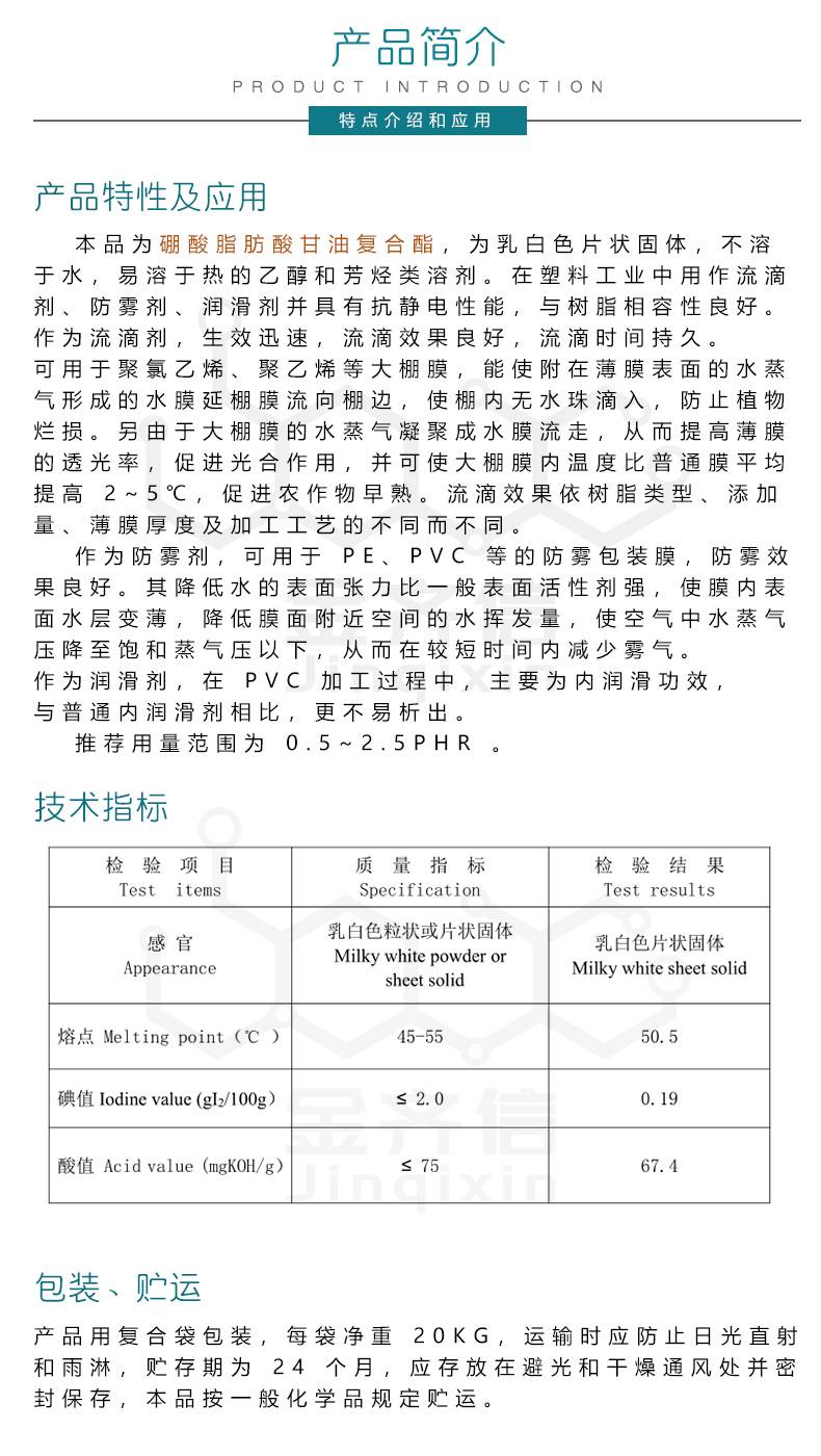 硼酸酯 薄膜防雾剂 农膜流滴剂 大棚膜 包装膜去雾