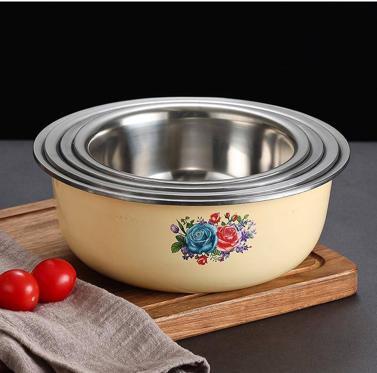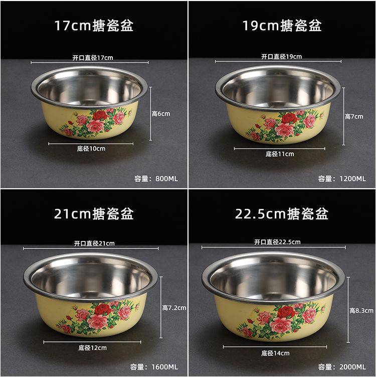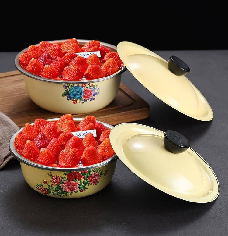 带盖老式搪瓷盆怀旧盖盆保鲜碗拌馅和面盆猪油盆火锅店复古
