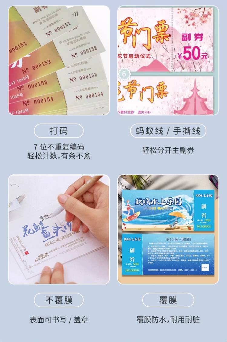 景区旅游门票双面印刷 热敏卡纸游乐园抽奖入场券二维码卡券定制