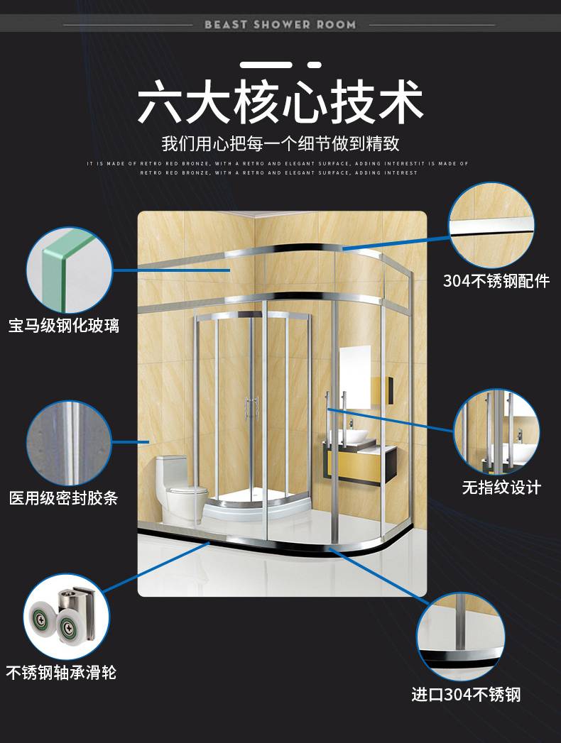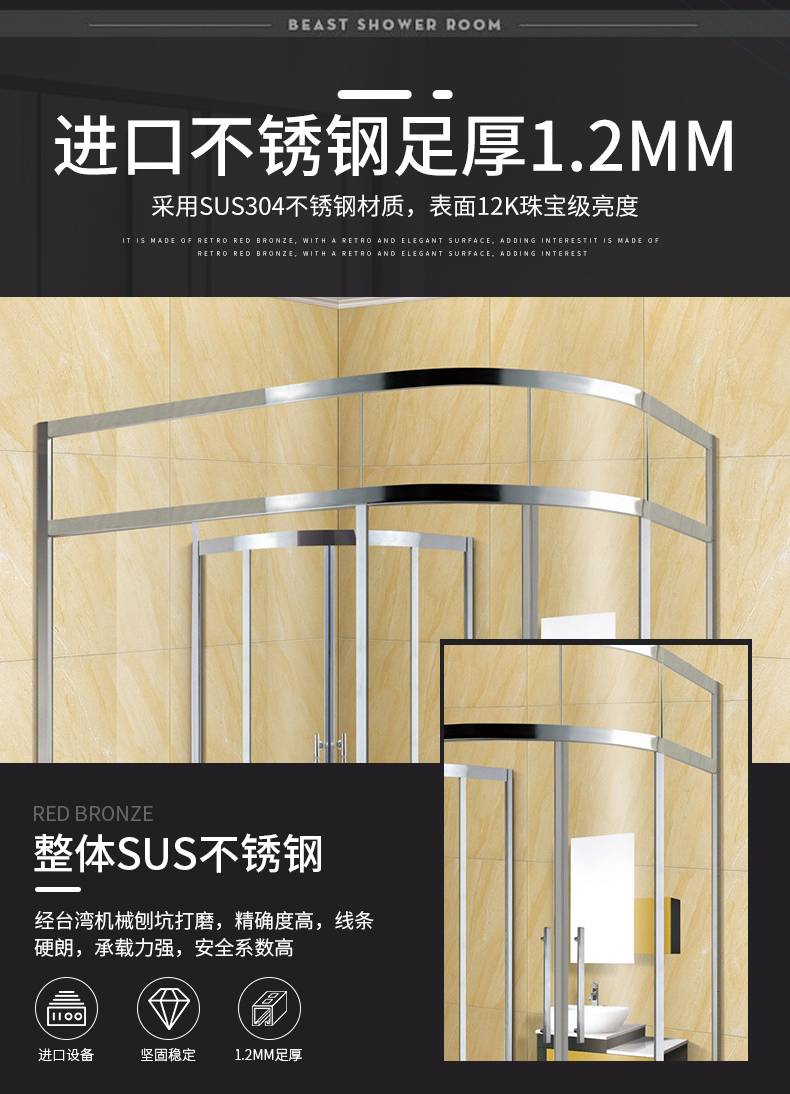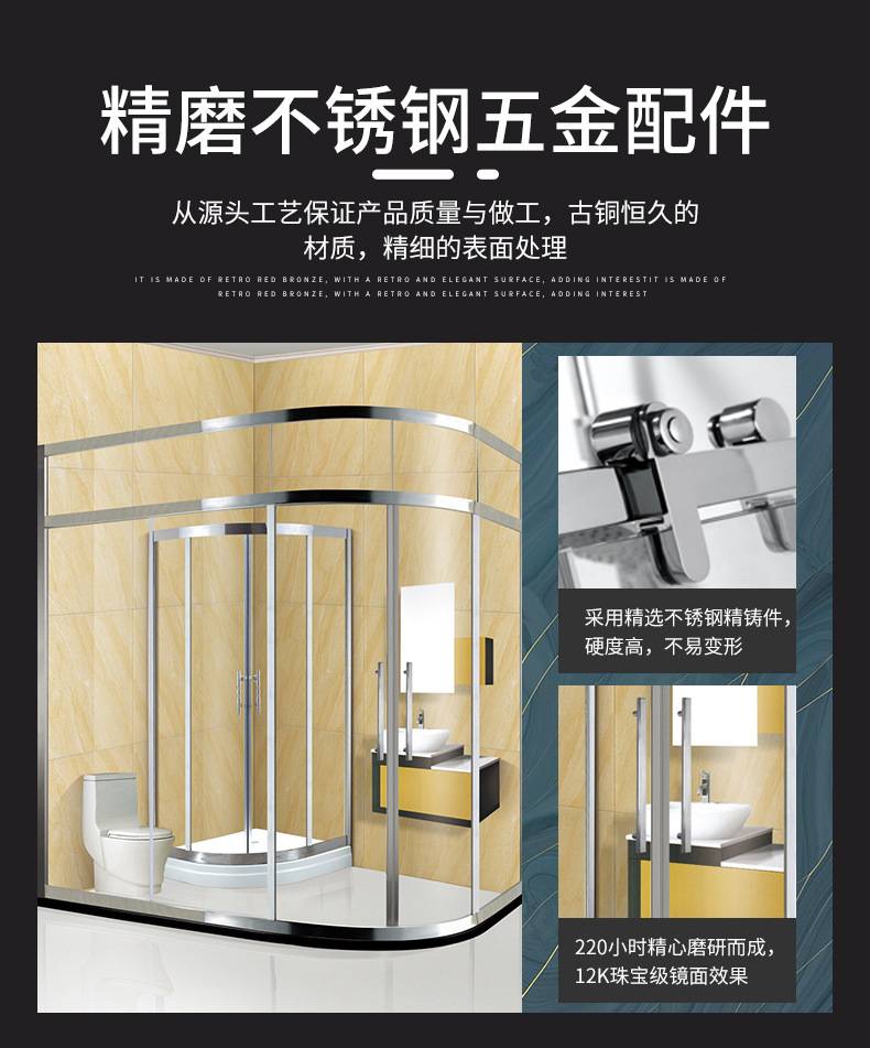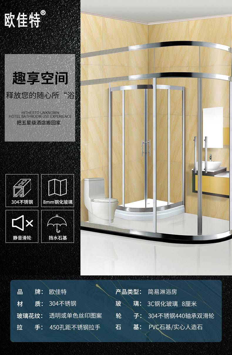 欧佳特 公寓家用浴室钢化玻璃隔断 卫生间不锈钢扇型弧形淋浴房