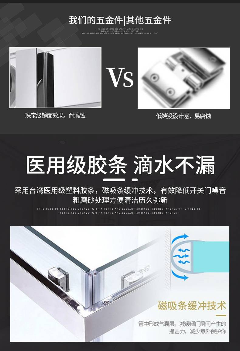 Customized black simple shower screen dry and wet separation