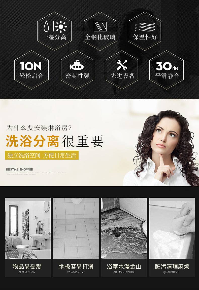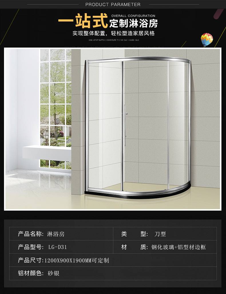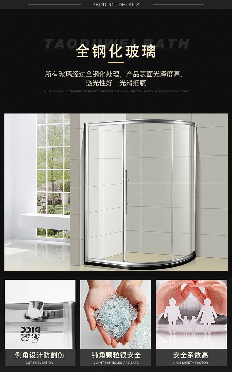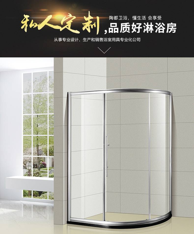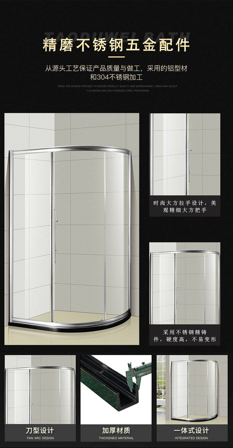 弧形简易扇形干湿分离浴室玻璃隔断 淋浴弧扇型淋浴房淋浴室定制