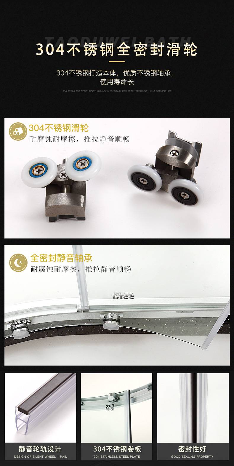Customized black simple shower screen dry and wet separation