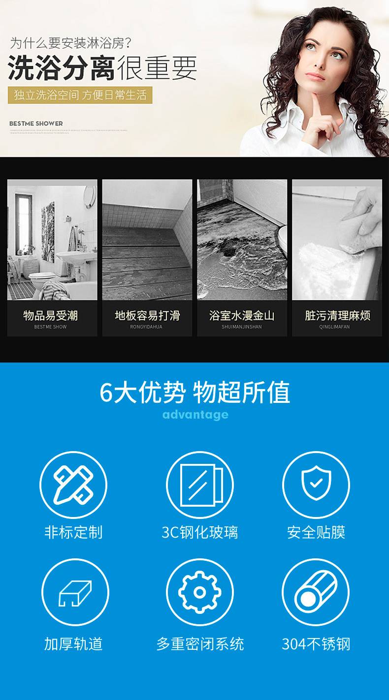 整体淋浴房一体式移门式沐浴房干湿分离浴室玻璃隔断洗澡间