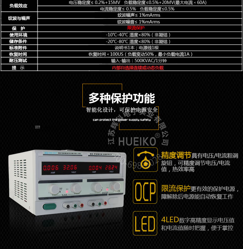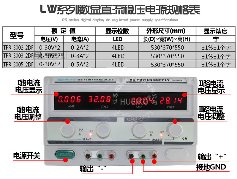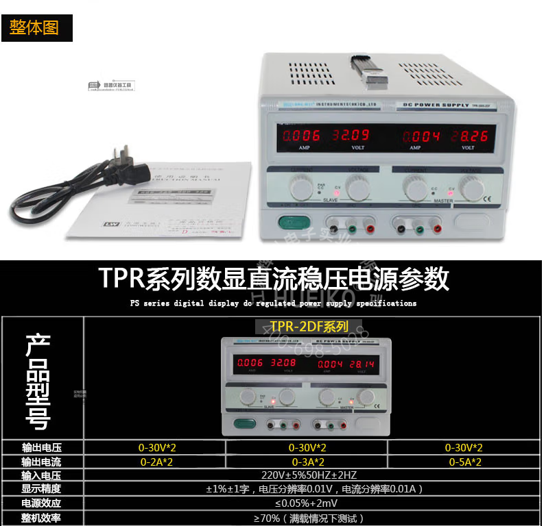 龙威TPR-3005-2DF高精度四位数显直流稳压电源30V/5A双路电源