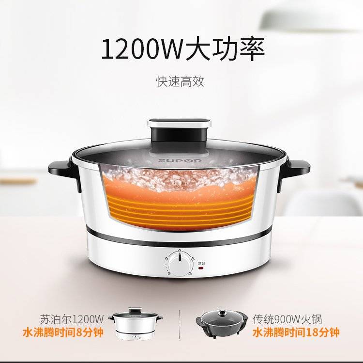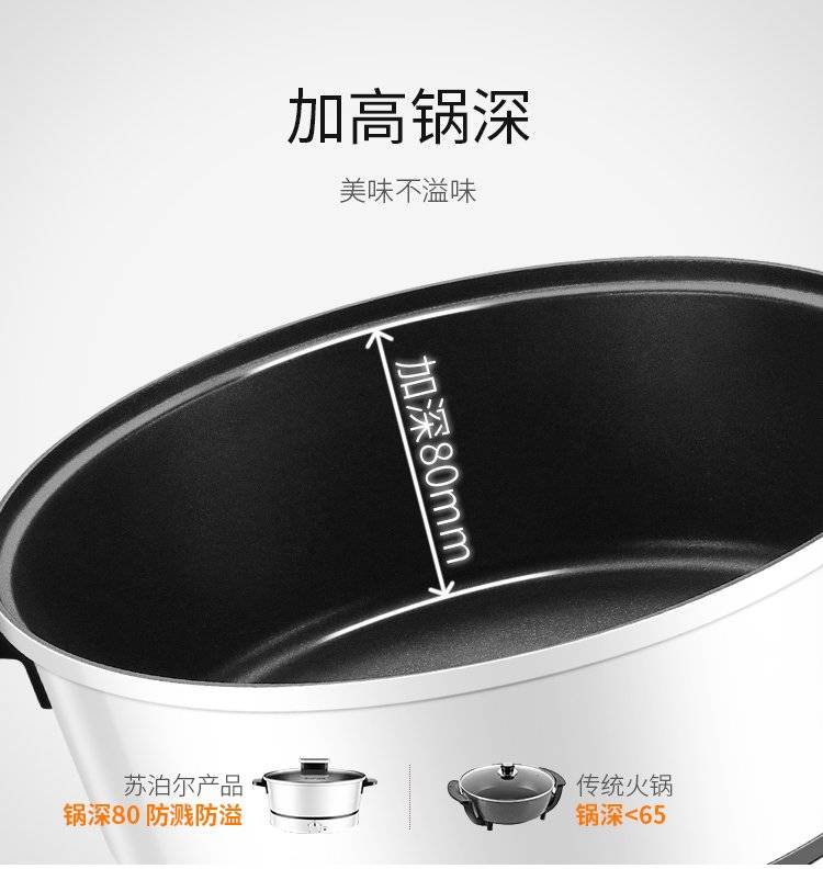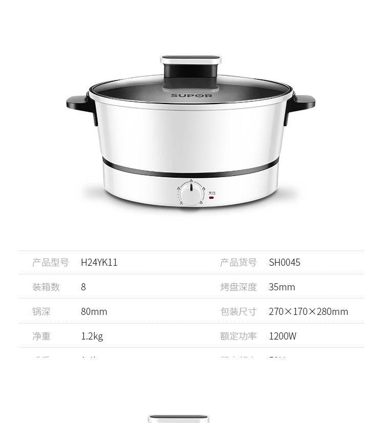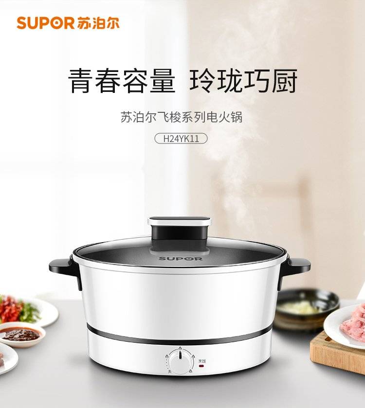 苏泊尔飞梭系列电火锅H24YK11 多功能电煮锅 四档火力调节 4升涮煮锅