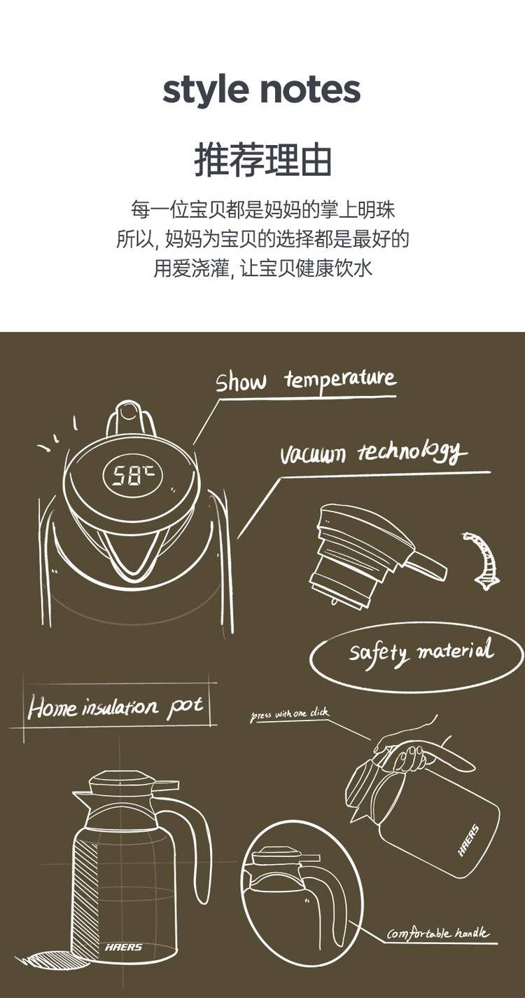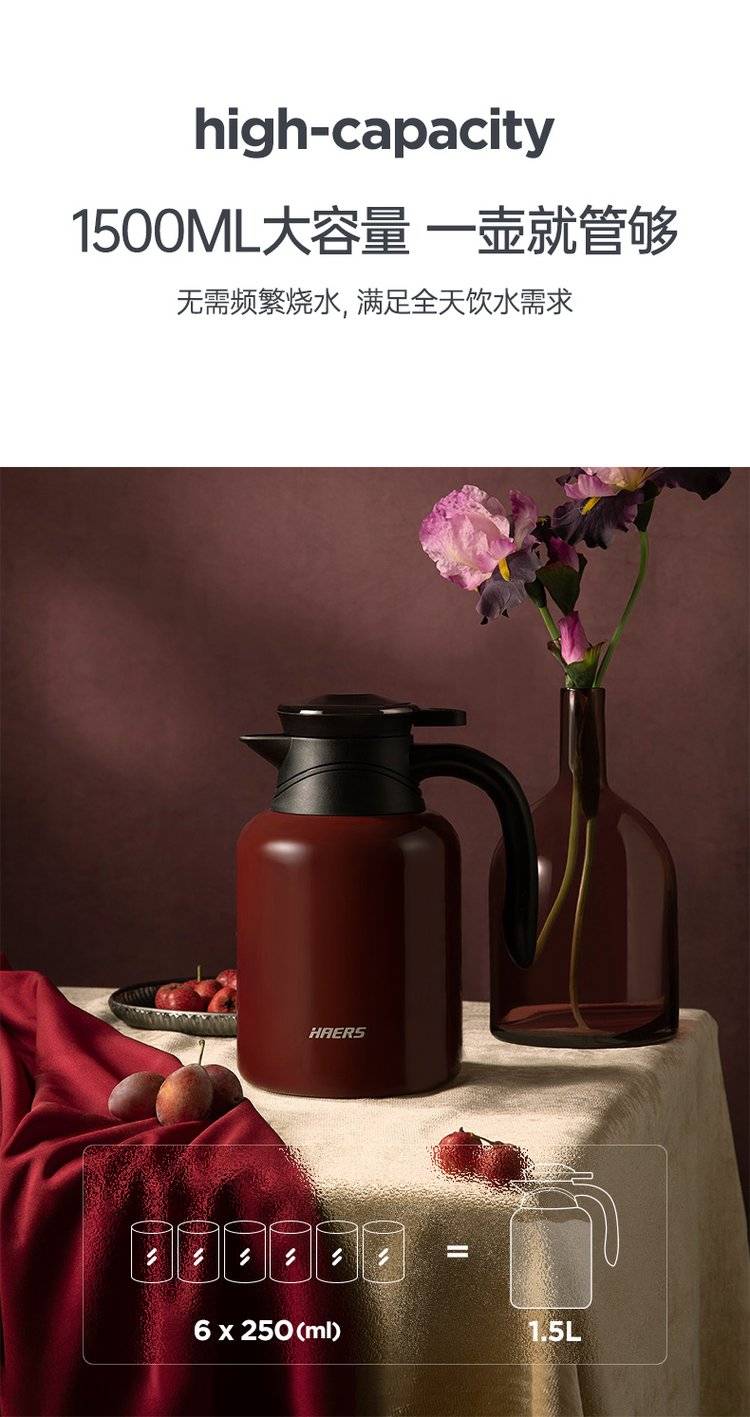 哈尔斯智能显温保温壶HDM-500-53 不锈钢咖啡壶 1500ml