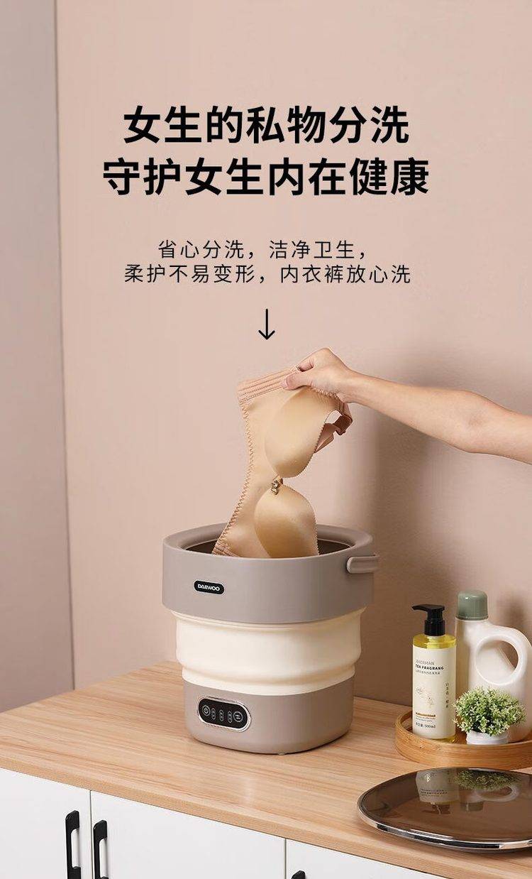 Daewoo, fold the mini washing machine dyxy-zd13, pull out the folding design, the wheel wash