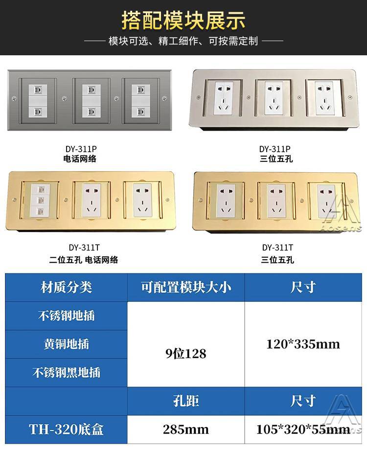 Aosens奥盛 AS-DY-311P 隐藏式地面插座 电源插座 信息插 空架