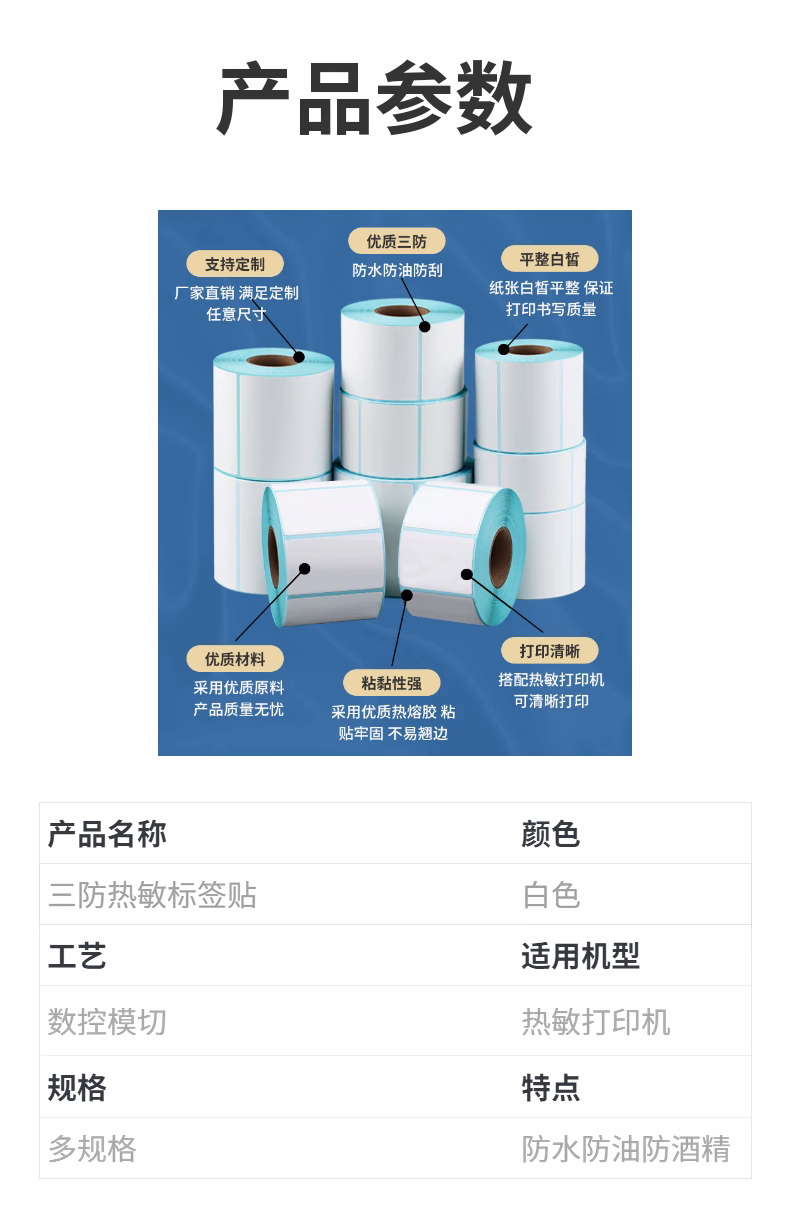 Three hot-sensitized paper with no taped milk stickers, wrapping stickers, printing 60*40*300 rolls/