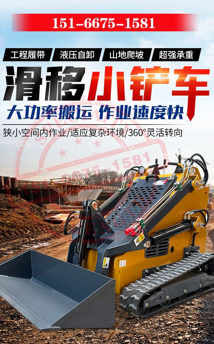 一机多用滑移式小铲车 小型履带式装载机 四轮驱动装卸搬运车