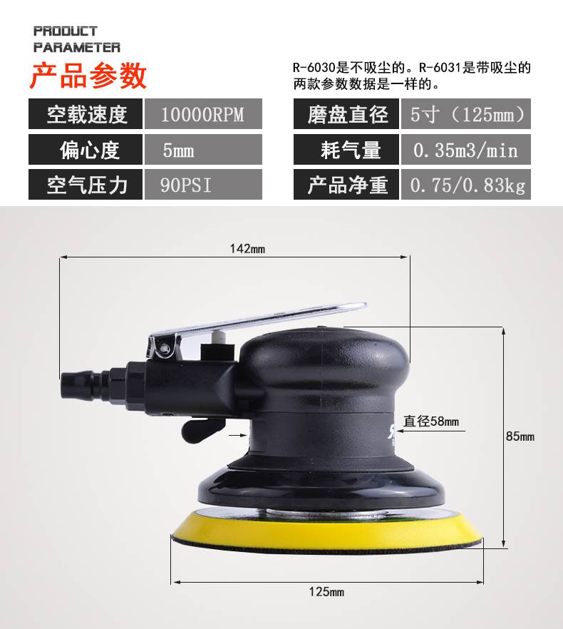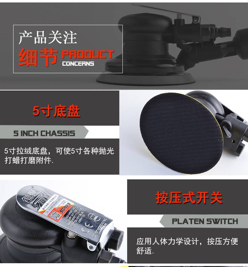 气动打磨机拋光机锐壹5寸砂纸乱纹机 打腊磨光机气磨机圆盘砂纸机