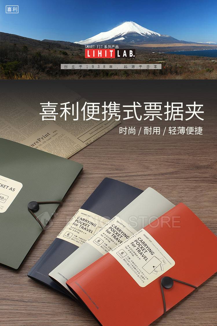 日本喜利LIHITLAB便携文件夹随身护照出差报销票据收纳夹电影票夹
