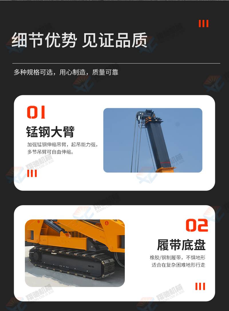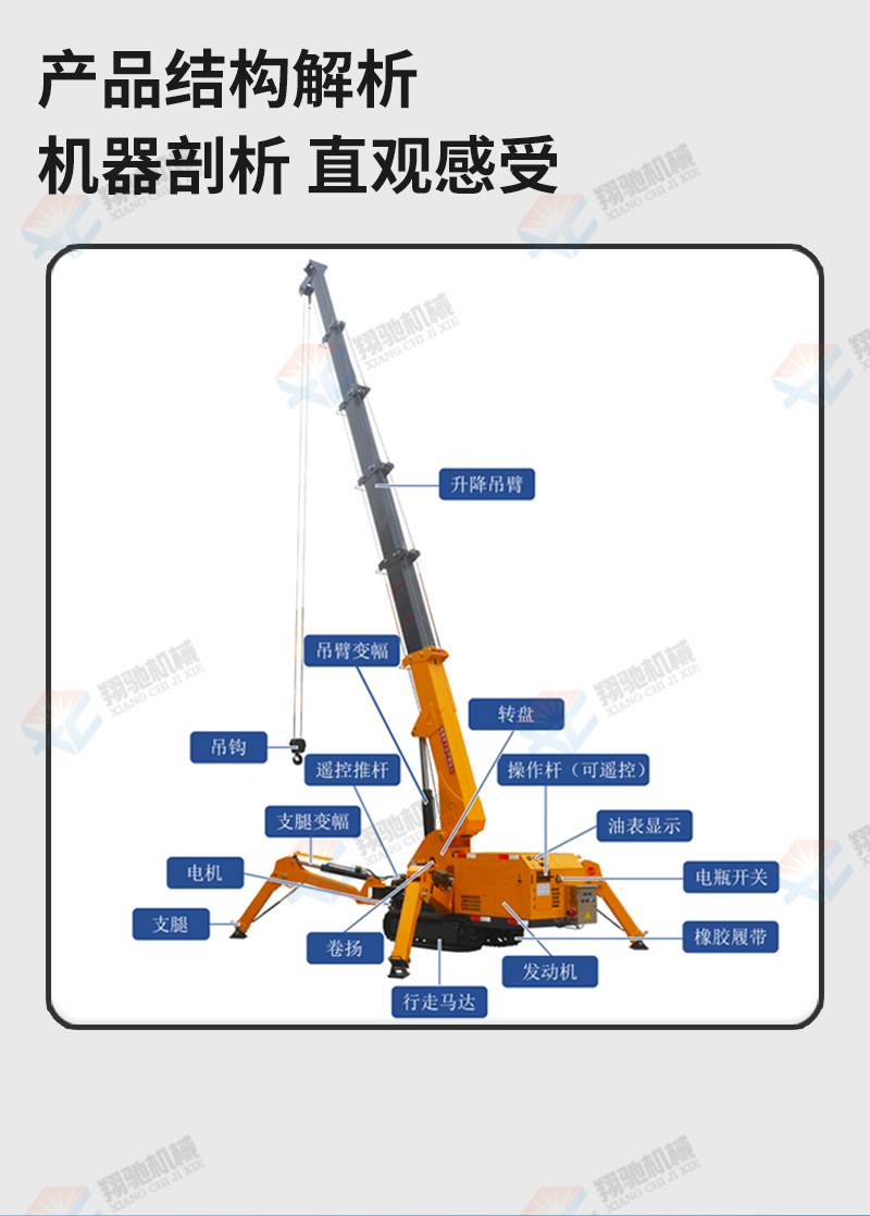 3 tons, 5 tons, 8 tons, 10 tons, small mobile tracked crane, two self-propelled spider-leg cranes