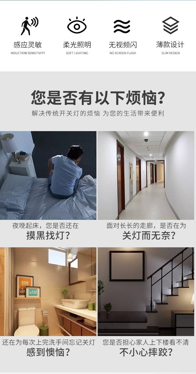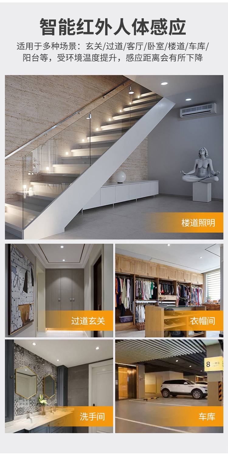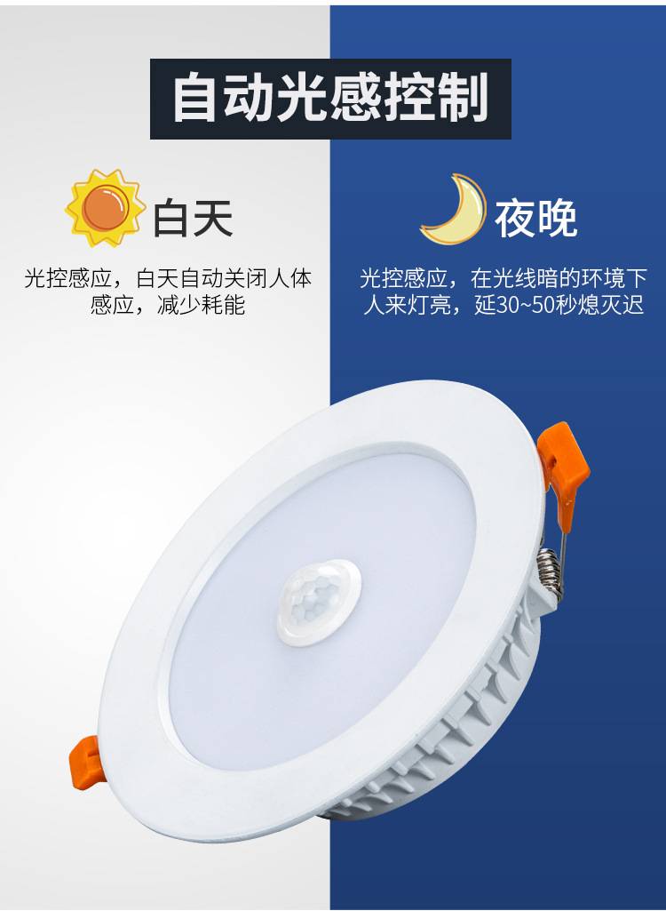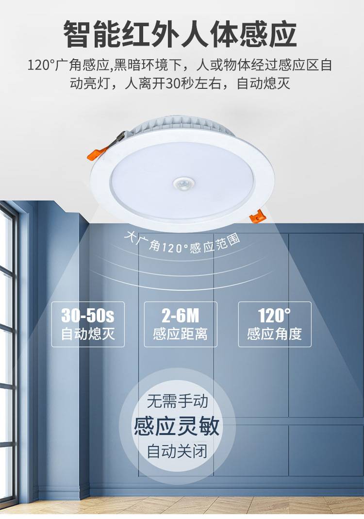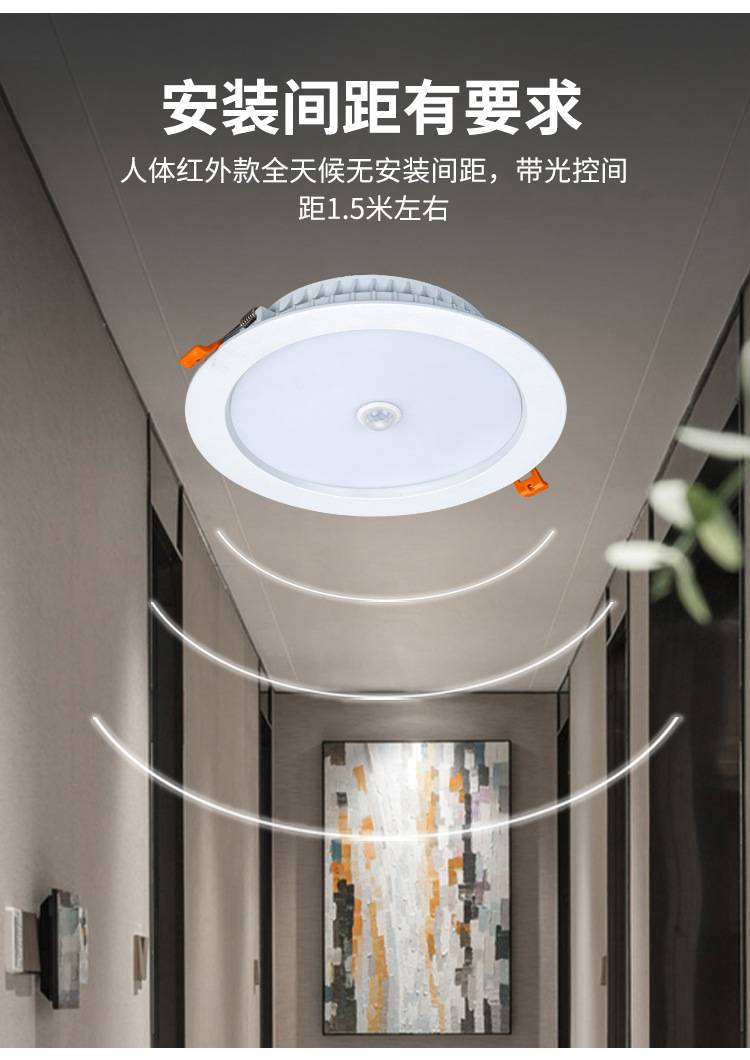 批发超薄红外人体感应筒灯暗装洞灯嵌入式天花灯走廊过道酒店感应
