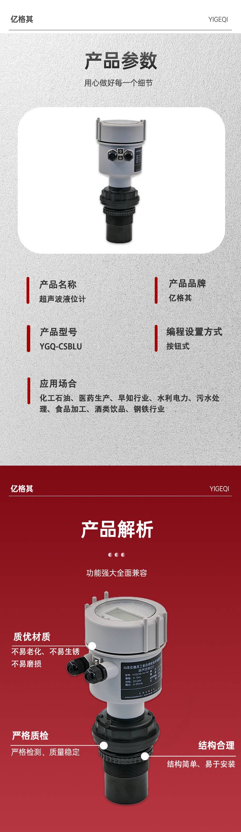亿格其 超声波液位计 水位 测量仪表 一体式 防腐防爆 复杂工况适用