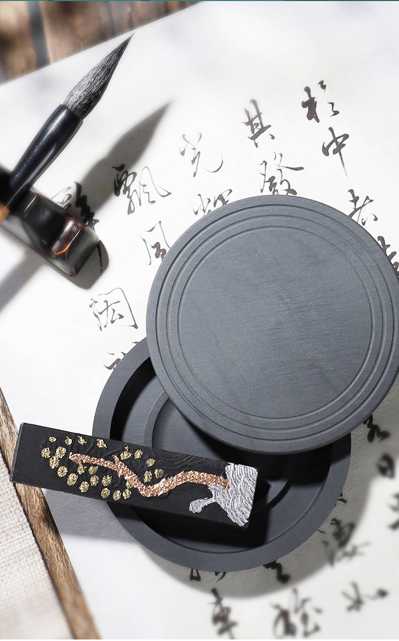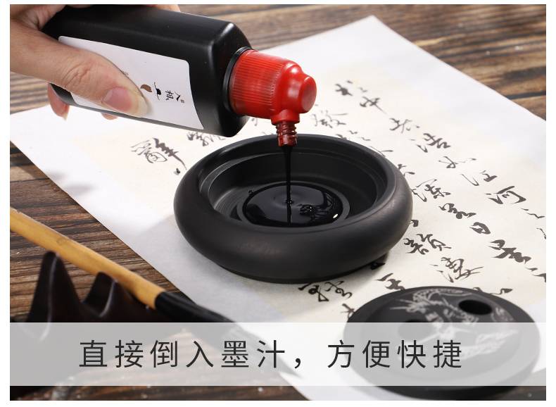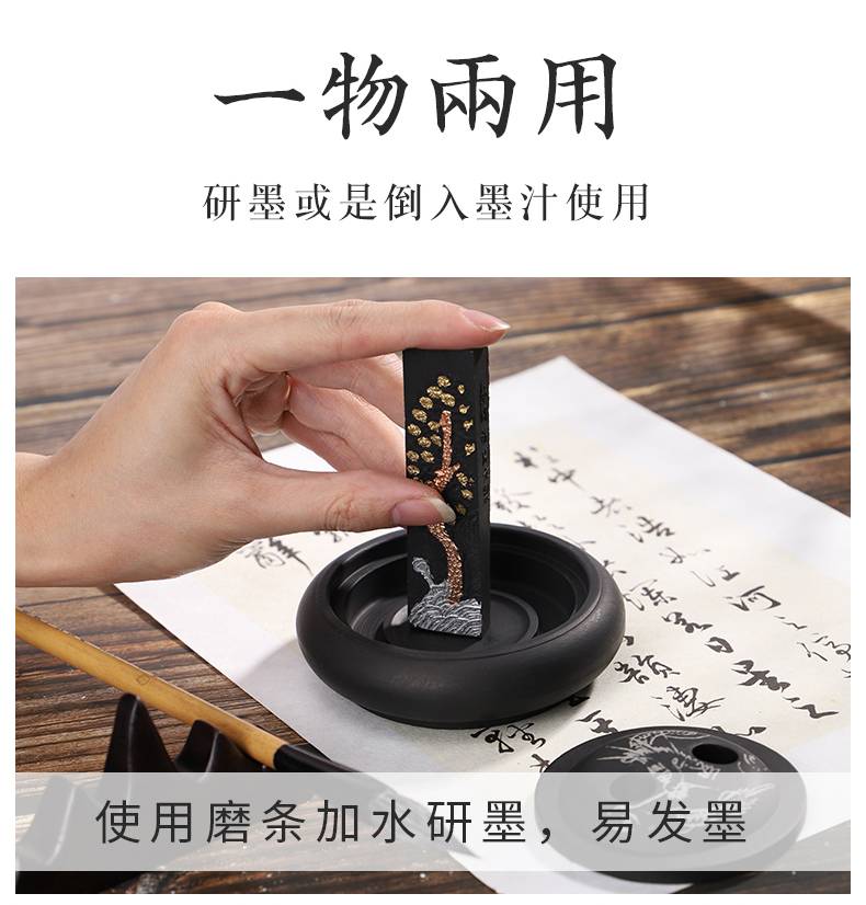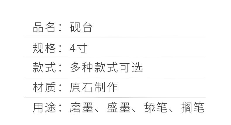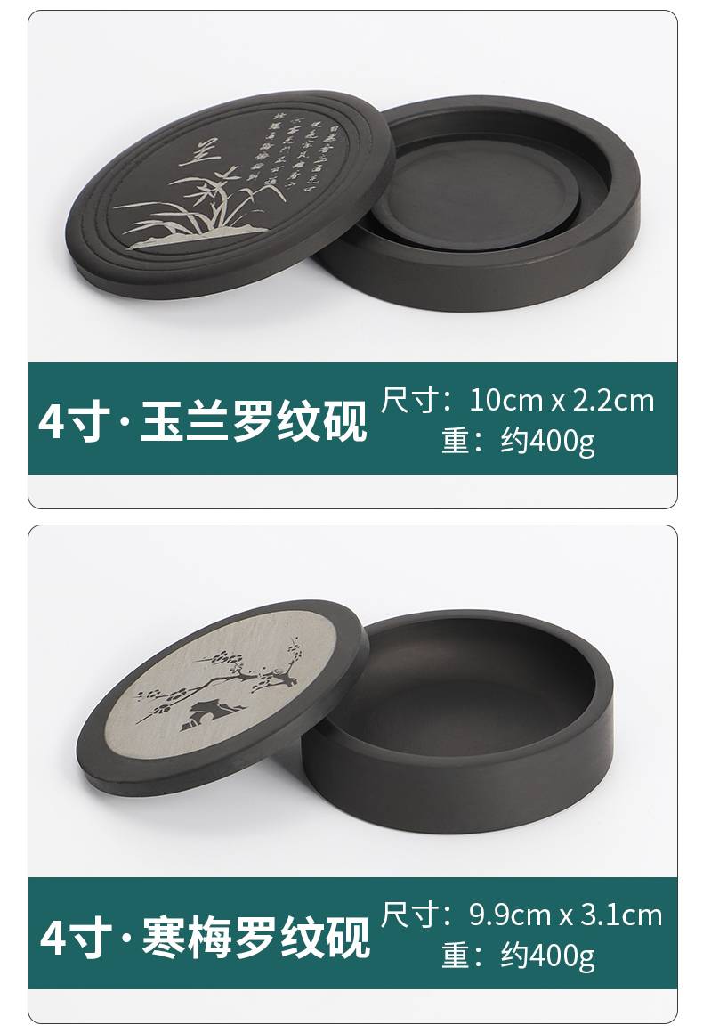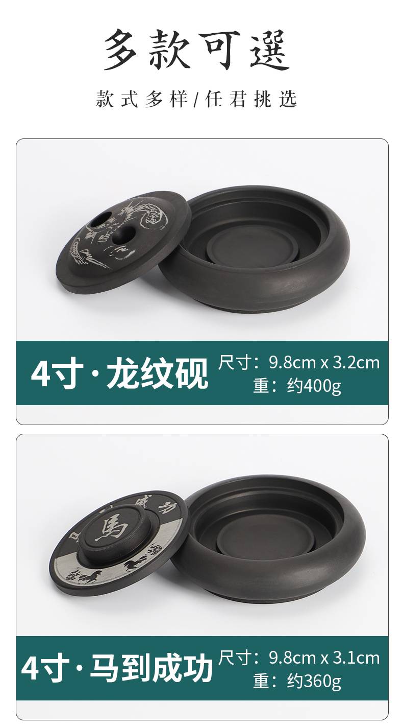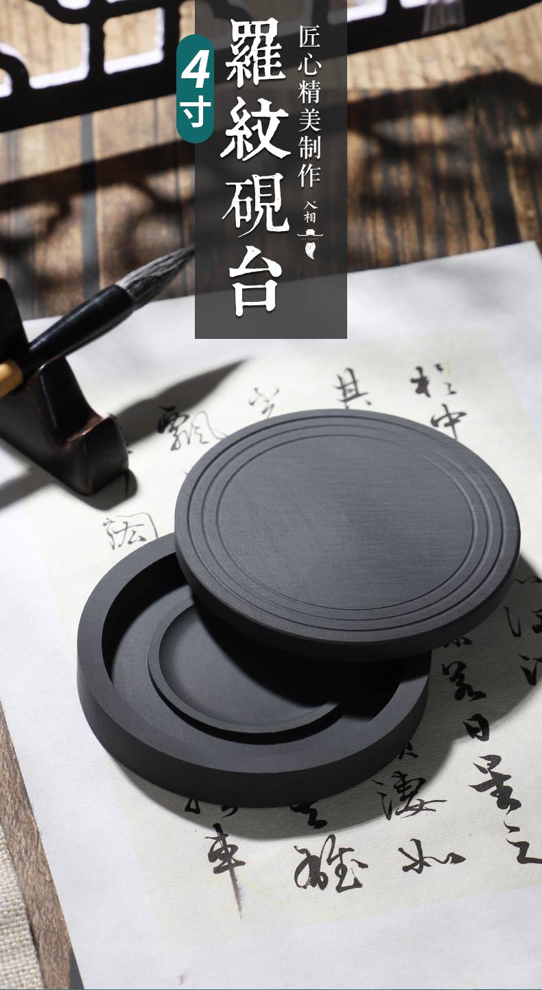 入相罗纹砚台书法专用可磨墨舔笔多功能带盖4寸原石砚台精致便携盛墨学生初学者毛笔书法用墨液不易干墨碟