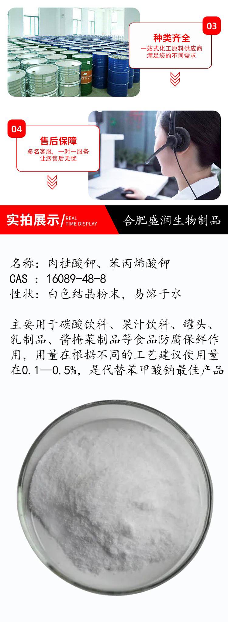 食品级肉桂酸钾 优质天然防腐保鲜抗菌剂 含量99 苯丙烯酸钾