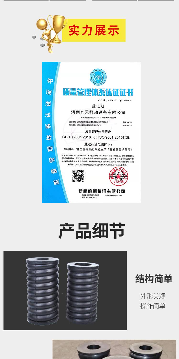 九天振动 橡胶复合减震弹簧 圆形 振动筛用螺纹弹簧