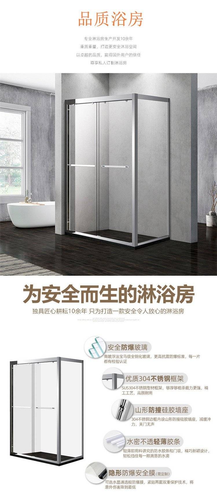 耀腾 沐浴房扇形卫生间宾馆洗澡房隔断形玻璃淋浴房