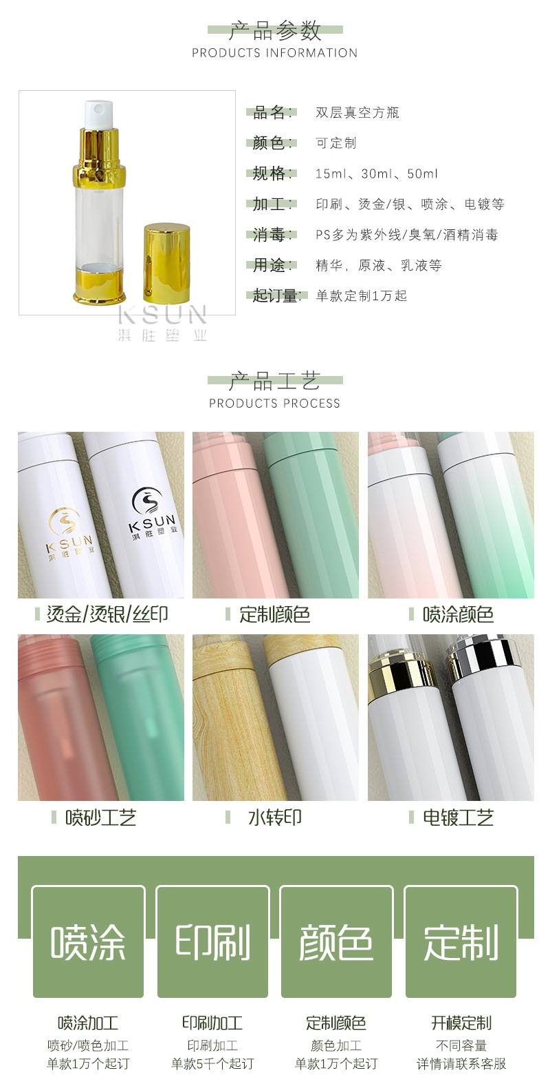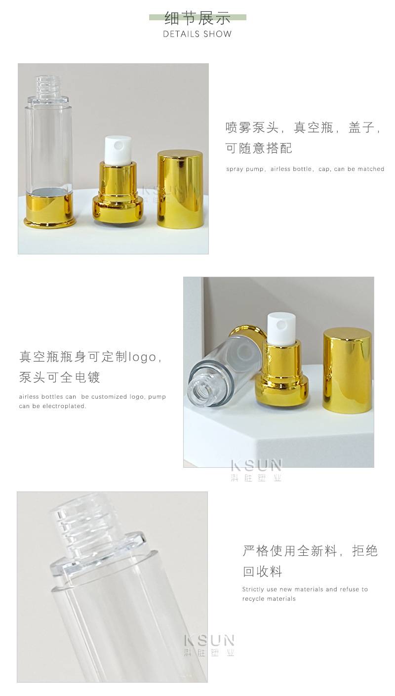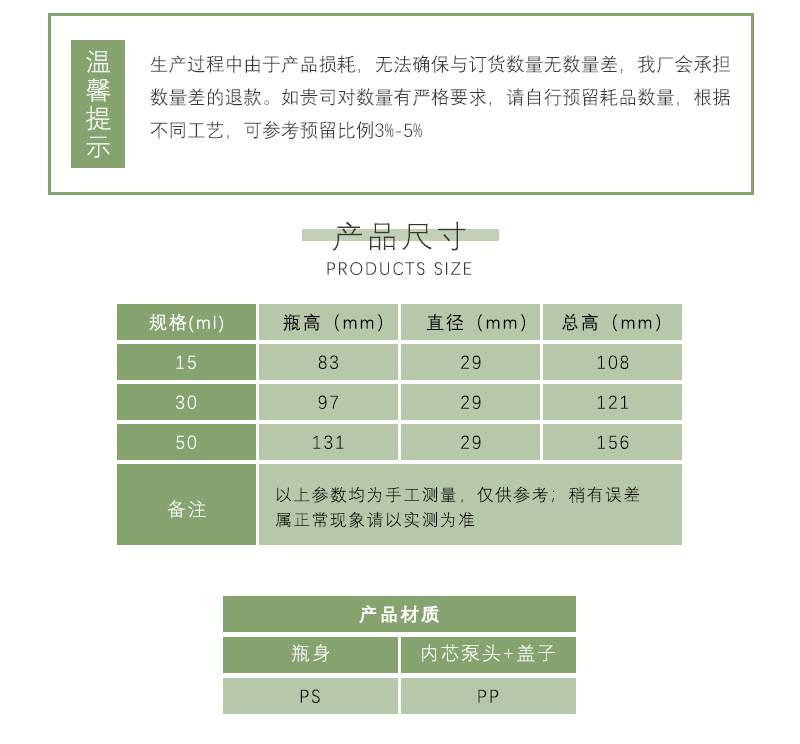 PS化妆品包材50ml按压爽肤水瓶30ml旅行分装瓶现货真空香水喷雾瓶