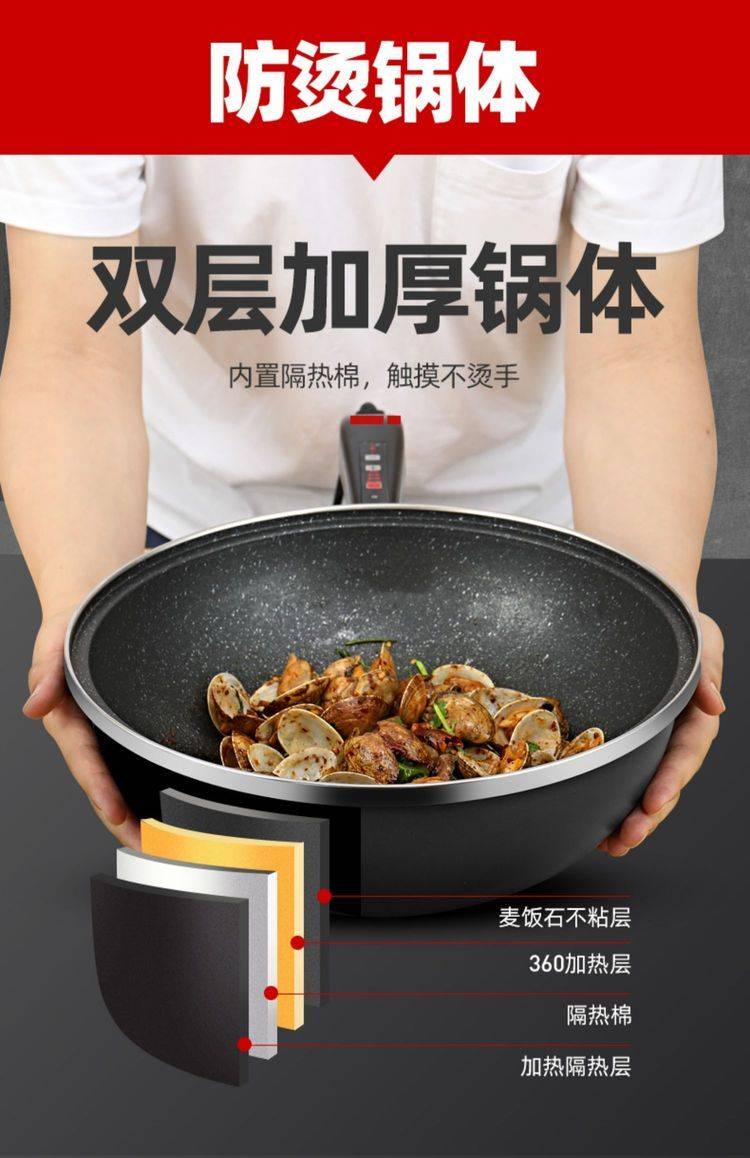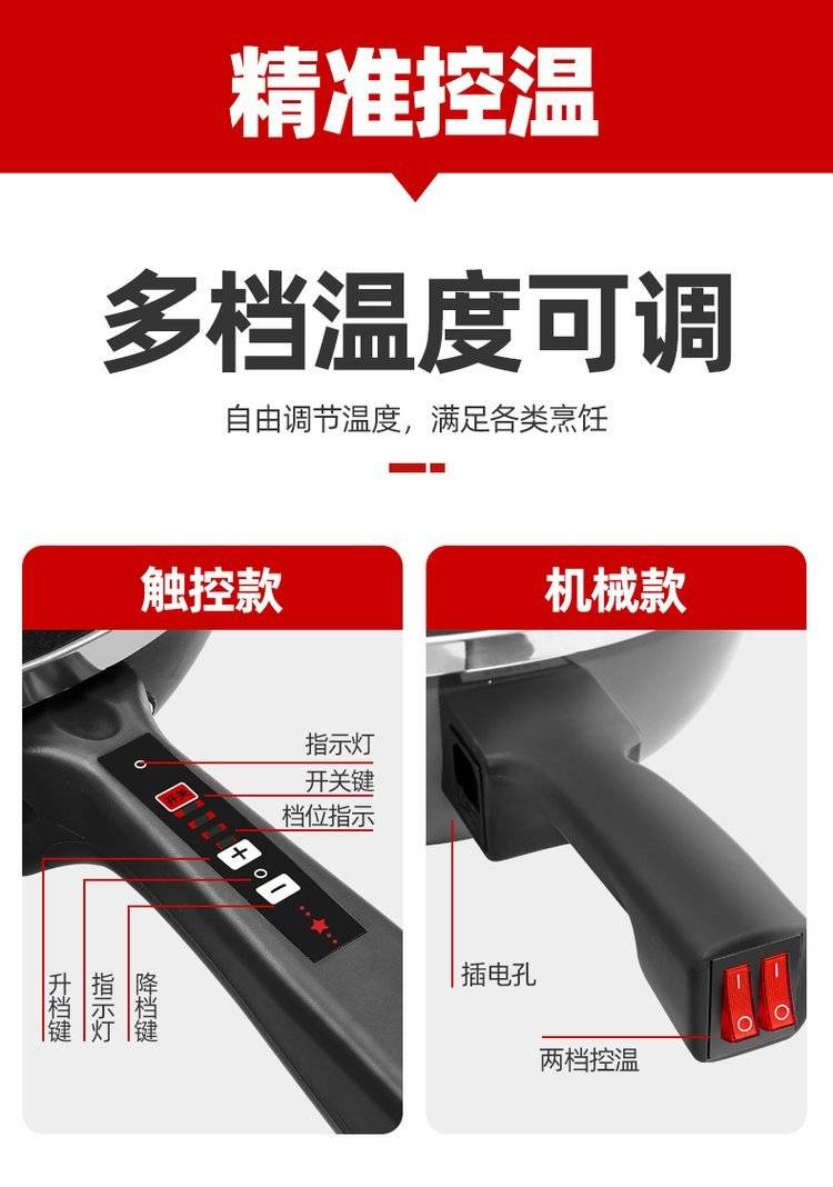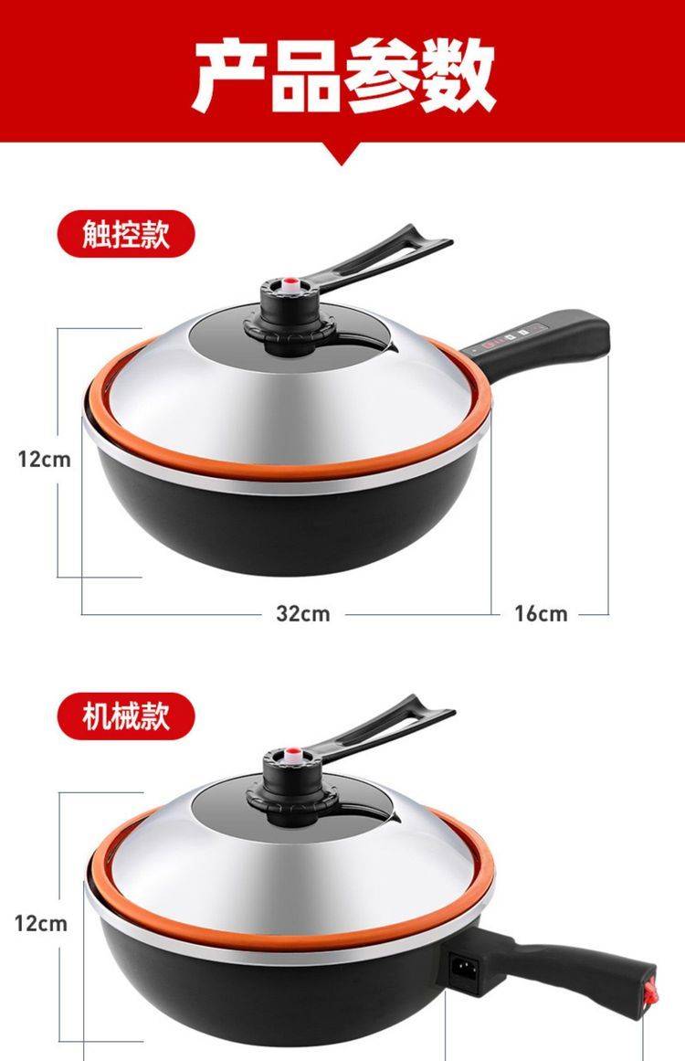 头等舱GZ381电炒锅家用2L-3L镀铬烤漆多功能