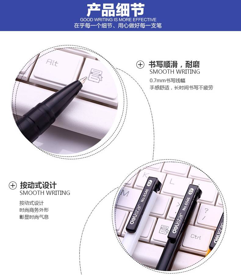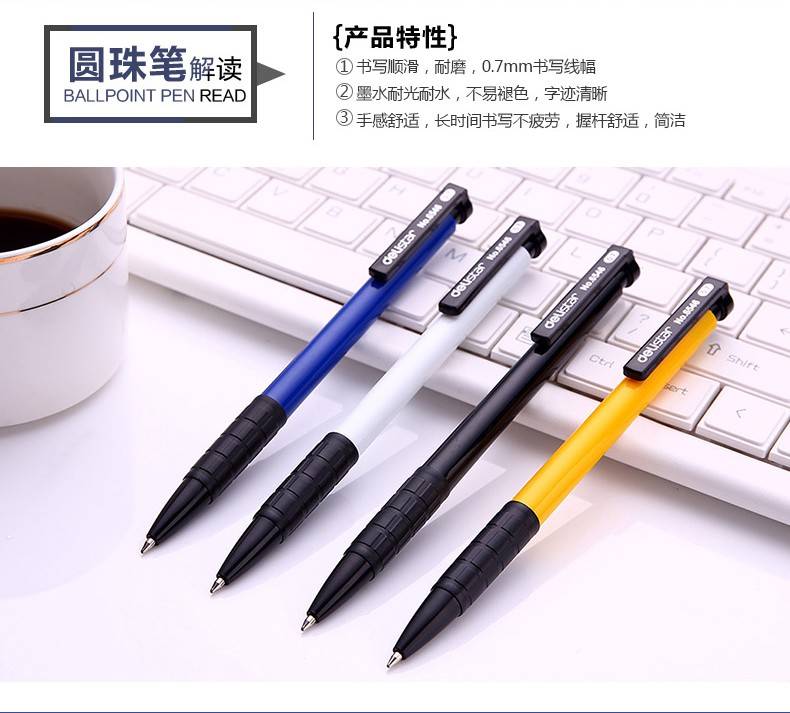 得力(deli) 6505圆珠笔 蓝色 按动0.7mm 油笔办公顺滑笔 12支盒