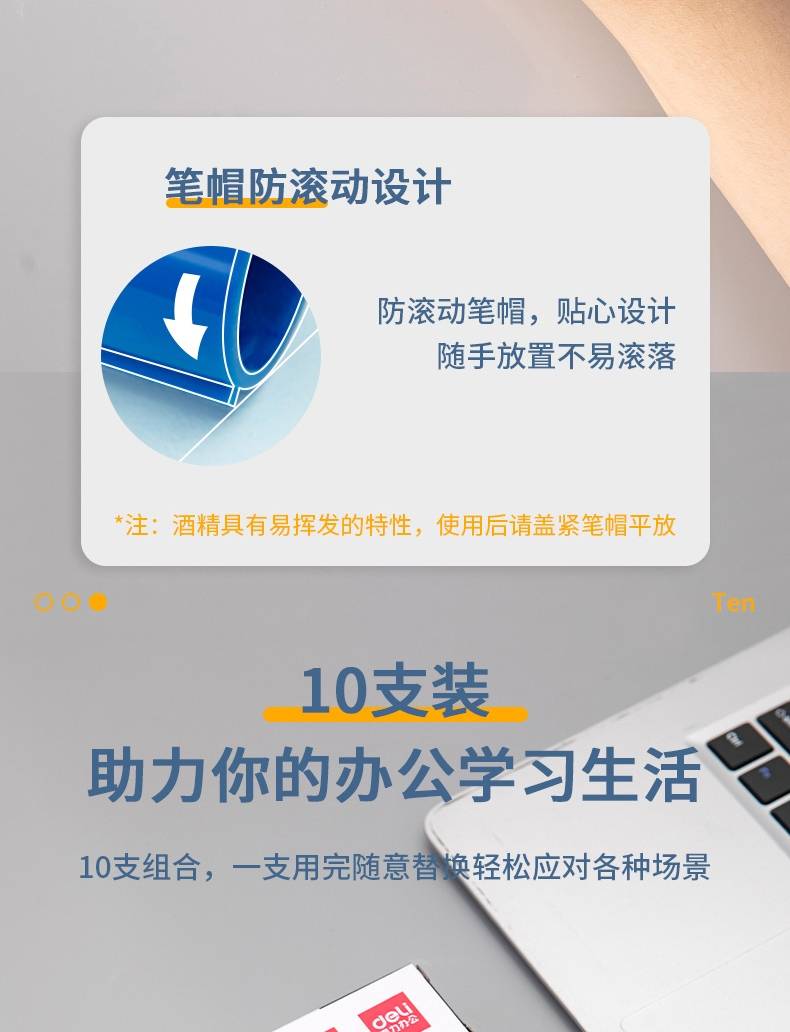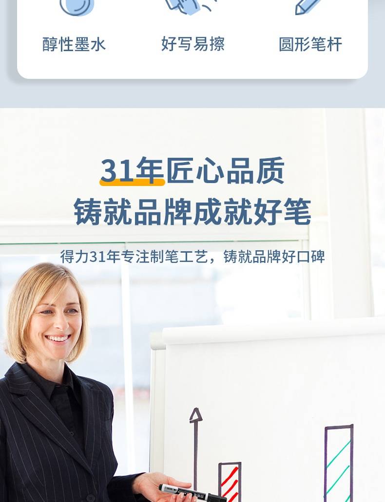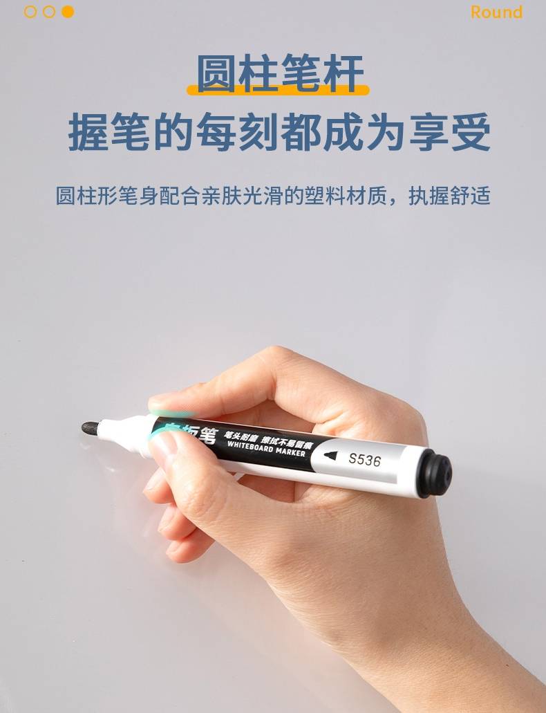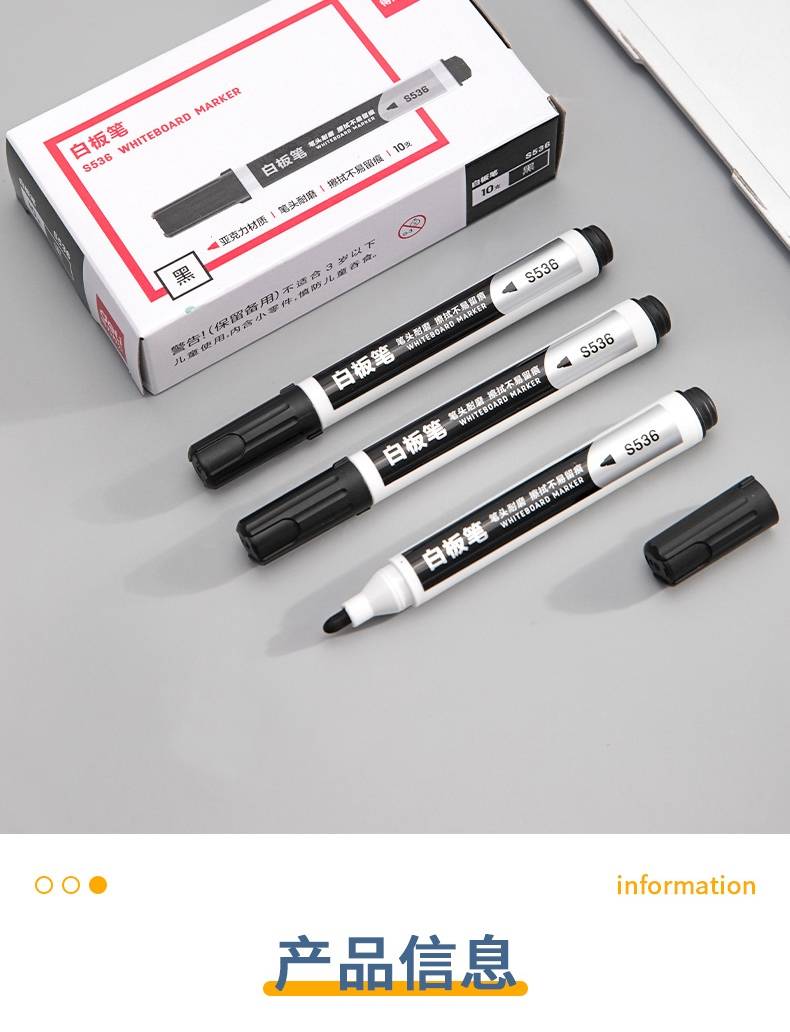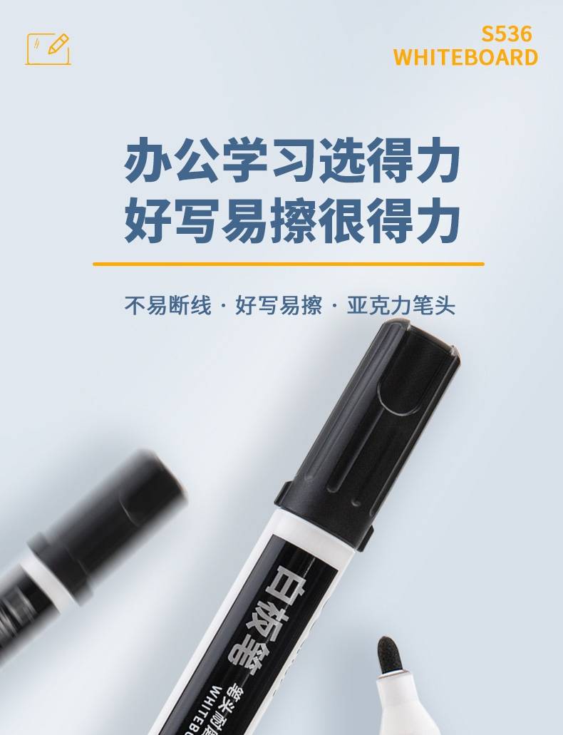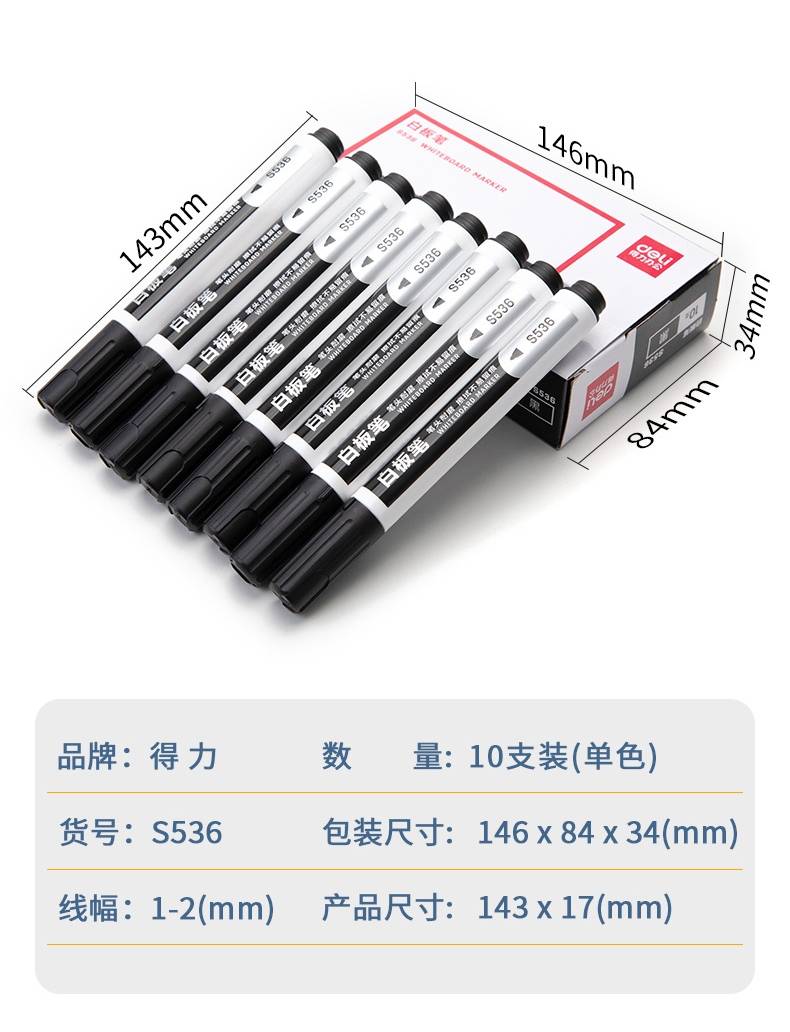 得力(deli)s536 易擦水性 、儿童教师通用大头 白板笔 黑色